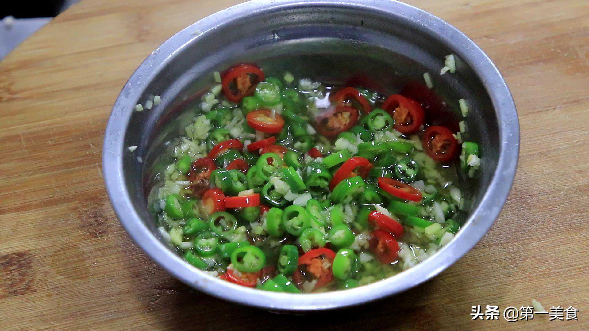 3.激油:锅内加入适量的植物油,油温升至七成热时起锅,把热油泼在准备好的配料中,热油能瞬间激出配料的香辣味。