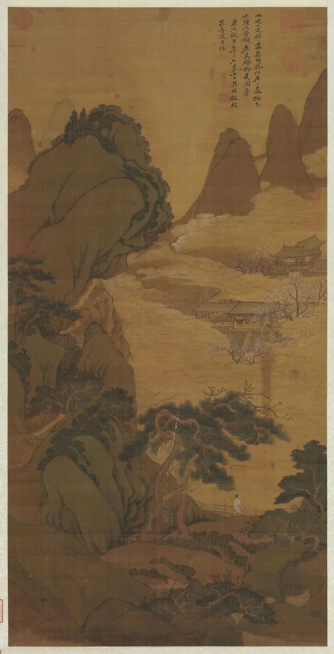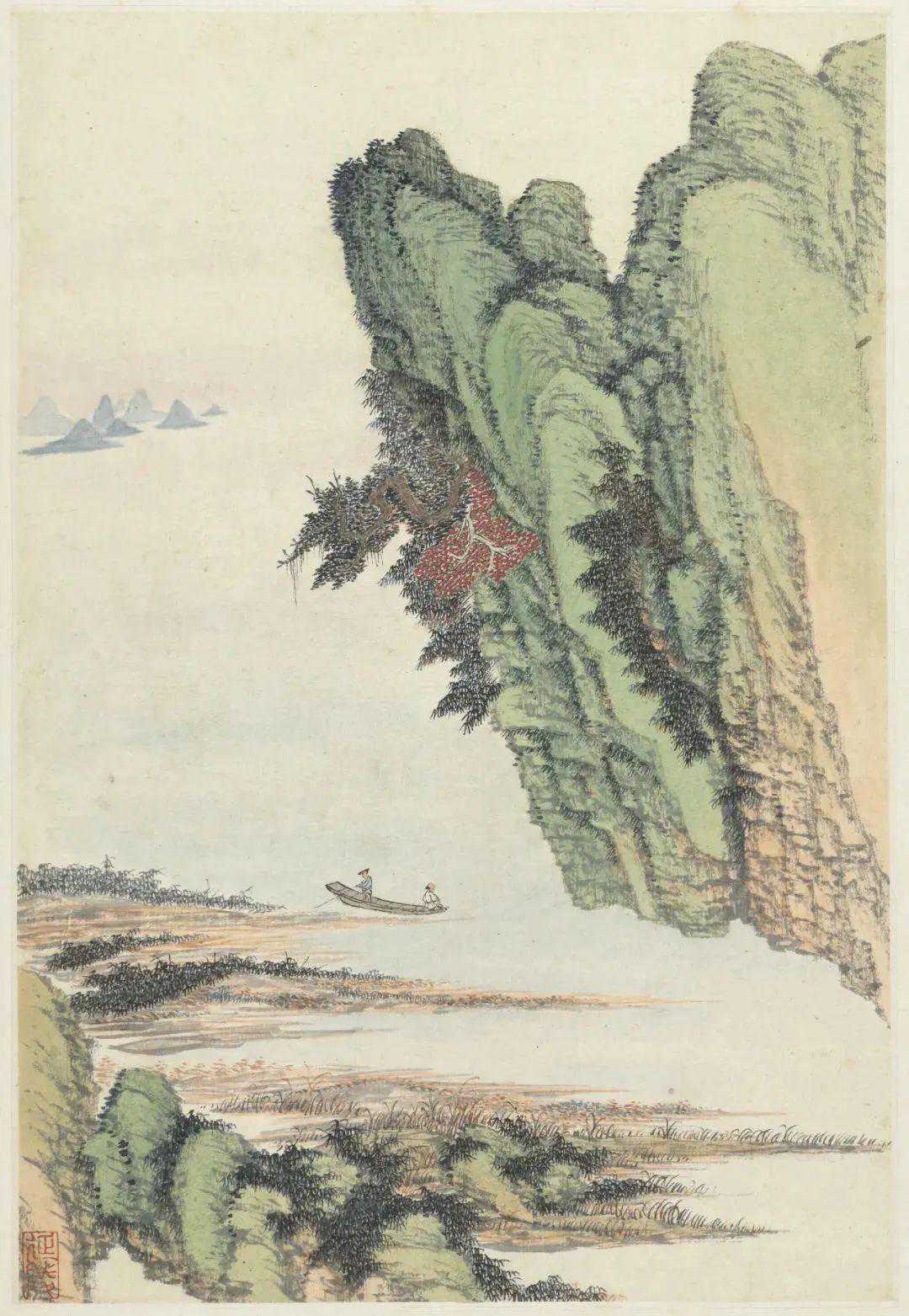 吴历的绘画就是在这样的历史背景下演进的。加入天主教耶稣会后,吴历全身心投入了教会的工作,大约有近20年的时间他很少绘画创作。所以,美术史上普遍认为吴历一生创作的高峰是在40~50岁这段时间,他的许多代表作就是作于这一时段内,比如上海博物馆收藏的《山中苦雨诗画卷》(1674年作,43岁)、《湖天春色图轴》(1676年作,45岁),北京故宫博物院收藏的《兴福庵感旧图卷》(1674年作,43岁)等等。