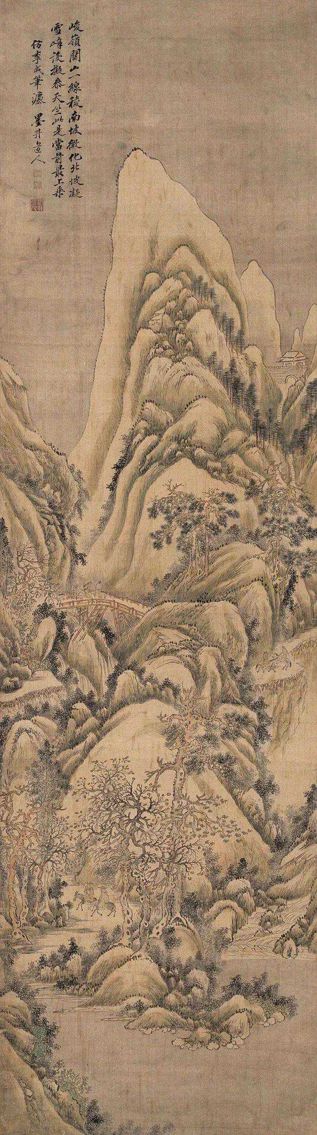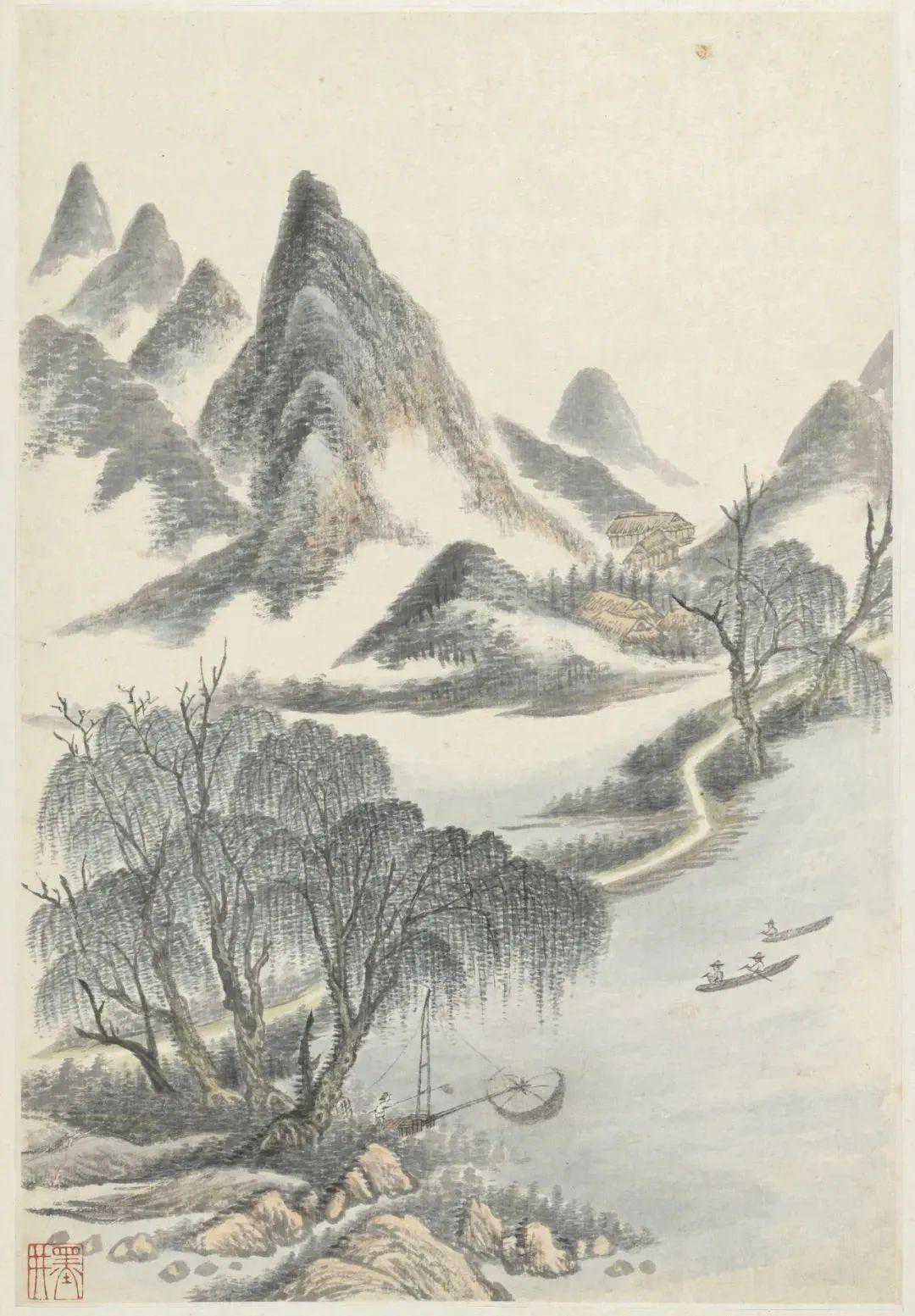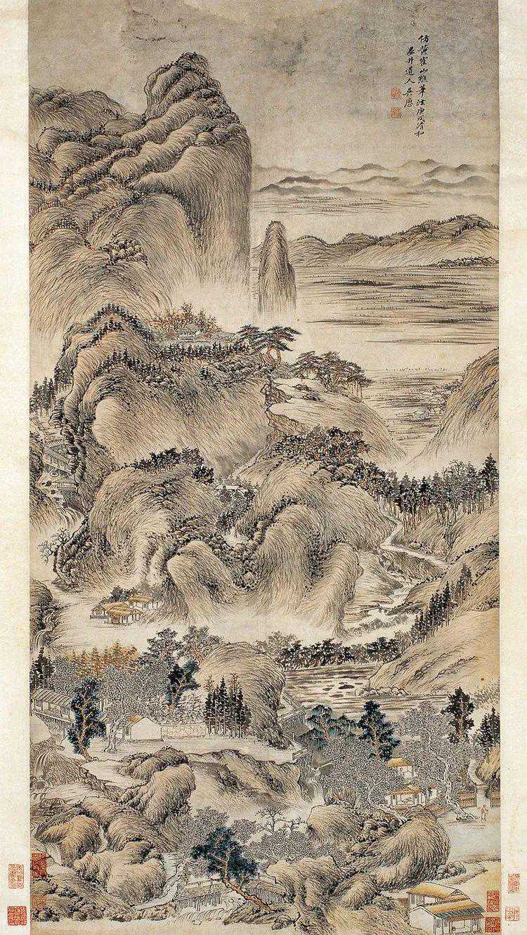 他摹古而不拘囿古人,能融汇诸家之长,自创新意,还在一定程度上吸收了西法,如布局、明暗等方面,故史传论其:“作画每用西洋法,云气绵渺凌云,迥异平时。”他的山水注意取法自然,使作品富有一定真实感。