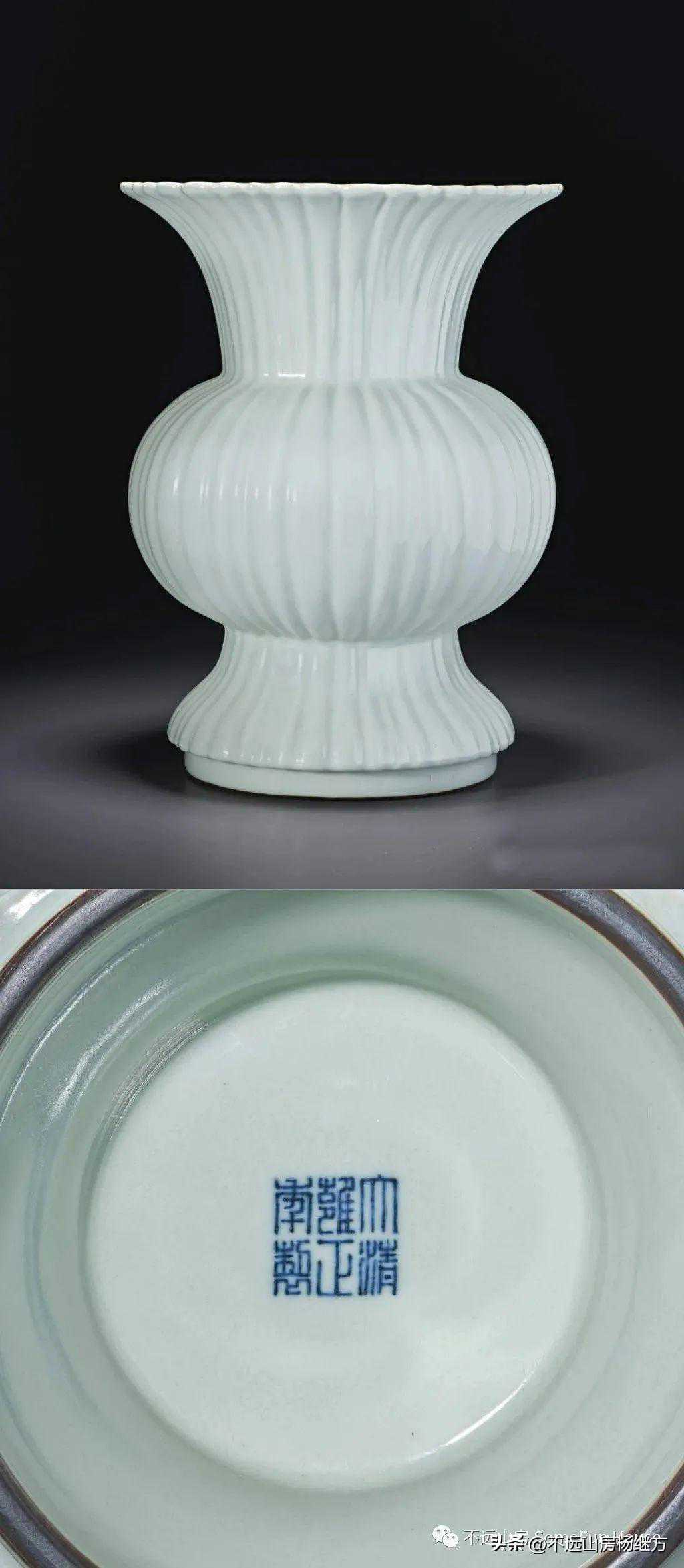 白釉一般认为是最容易控制的,其实不然。雍正时期的白釉并不是现代工艺上所指的白色乳浊釉,而是一种有玻璃质感的透明釉,完全依靠胎土本身的白度呈现出白色。对胎土的精纯度要求非常高,稍微有一点杂质就会影响釉面的纯净。雍正白釉有高足杯、带盖豆、撇口瓶、三足炉、茶壶、酒盅、大盘、小碗等,胎薄体轻,有不少仿永乐甜白的高足把杯,釉下暗刻双龙纹或缠枝花卉,杯里心有暗刻双圈六字楷书款“大清雍正年制”,十分典雅。雍正白釉是一种有玻璃质感的透明釉,完全依靠胎土本身的白度呈现出白色。对胎土的精纯度要求非常高,稍微有一点杂质就会影响釉面的纯净。雍正白釉有高足杯、带盖豆、撇口瓶、三足炉、茶壶、酒盅、大盘、小碗等,胎薄体轻,有不少仿永乐甜白的高足把杯,釉下暗刻双龙纹或缠枝花卉,杯里心有暗刻双圈六字楷书款“大清雍正年制”,十分典雅。