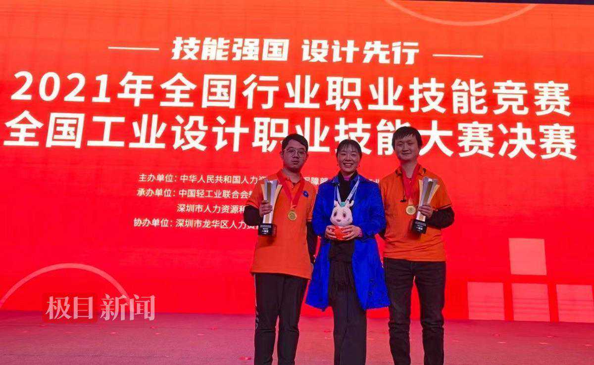 李杰(右一)张杨(左一)与全国教书育人楷模禹诚教授在全国工业设计职业技能大赛颁奖典礼合影