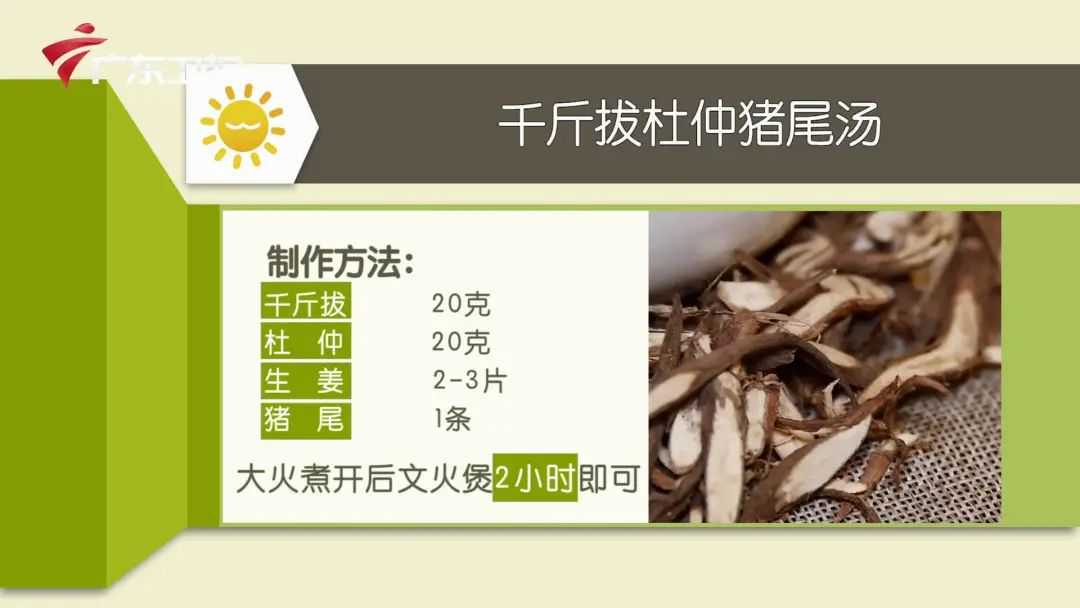 专家推荐一道可补肝健身、强健筋骨的汤膳——千斤拔杜仲猪尾汤。