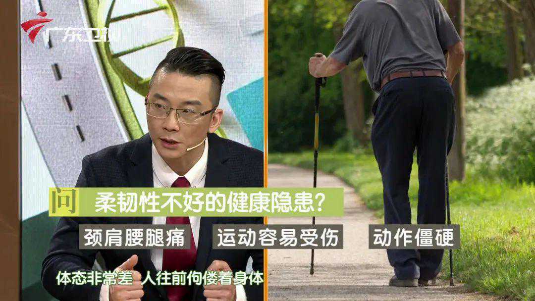 否则柔韧性会下降并引发颈肩腰腿疼痛、运动易受伤、老态龙钟、静脉曲张、骨折,晚年还容易摔倒。