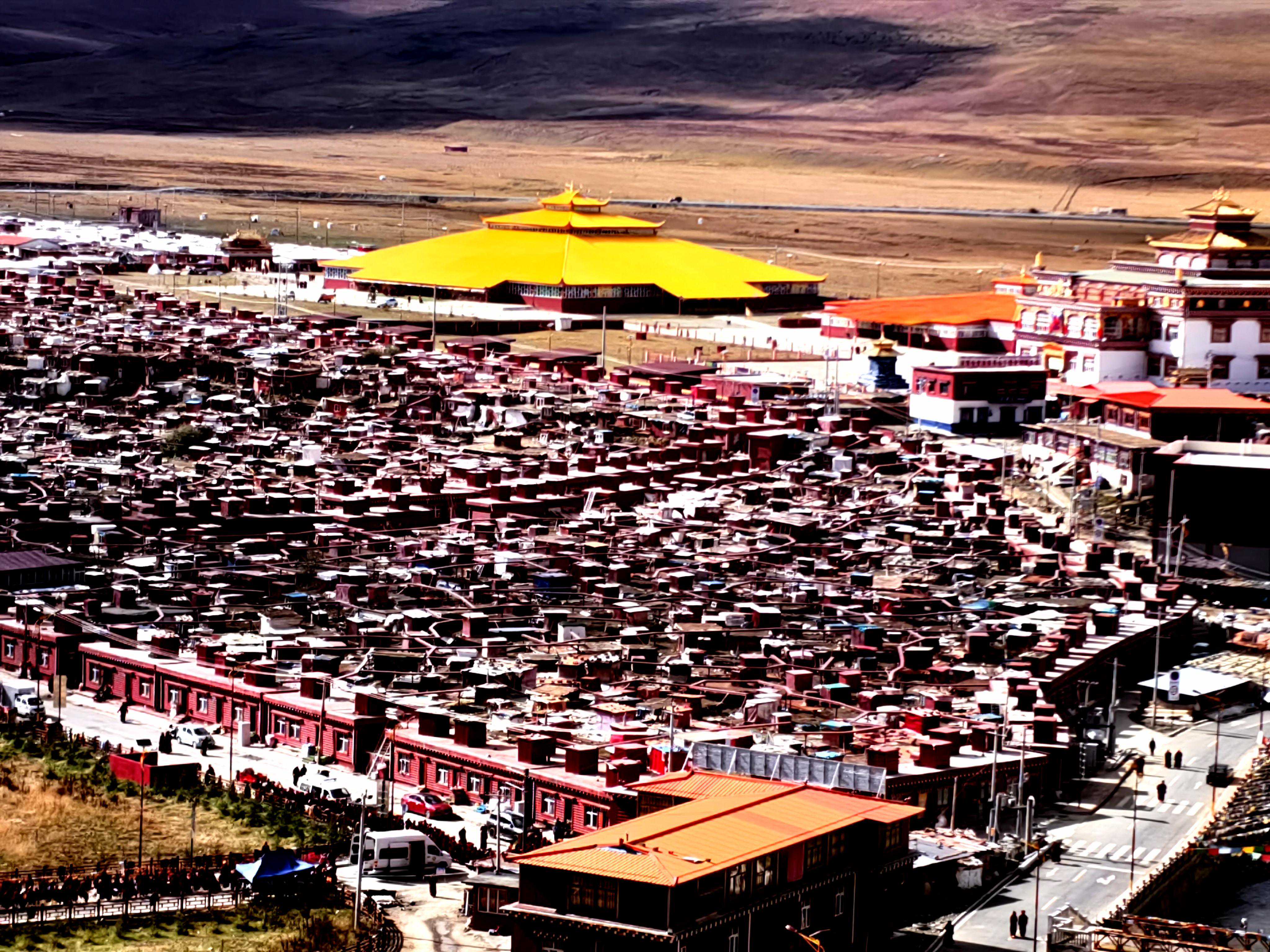 今天从白玉县前往道孚县。沿着甘白路(如今是省道S314)首先来到亚青寺。亚青寺建于昌台大草原,昌曲河穿寺而过,地势平坦、视野开阔。亚青寺是与色达佛学院齐名的大型修学圣地,周围常住有两万余僧尼。亚青寺的大部分修行者的房屋是绕河而建,以河为界分为扎巴(指出家男众)、觉姆(指出家女众)两区。据说亚青寺是世界上出家女性最多的地方。