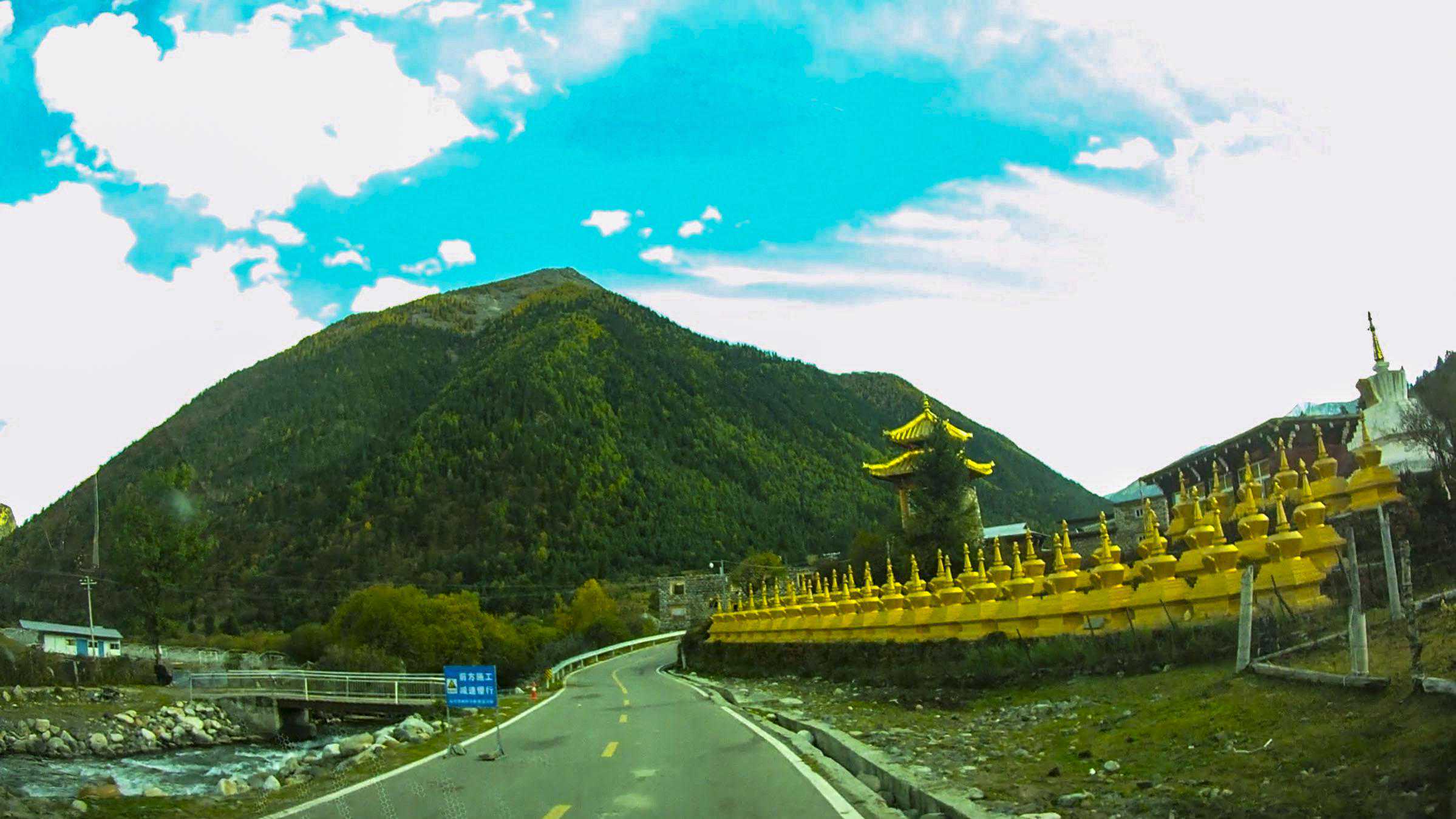 离开亚青寺继续前往道孚。亚青寺至道孚,导航路线通常是走甘孜,炉霍到道孚,路程比较远,还要行走一段317。民工同学经过网上搜索研究,发现经新龙县,拉日马镇有一条近道直达道孚县,但路可能不好走。自驾出行,冒险精神是必须要有的,所以决定走新路。