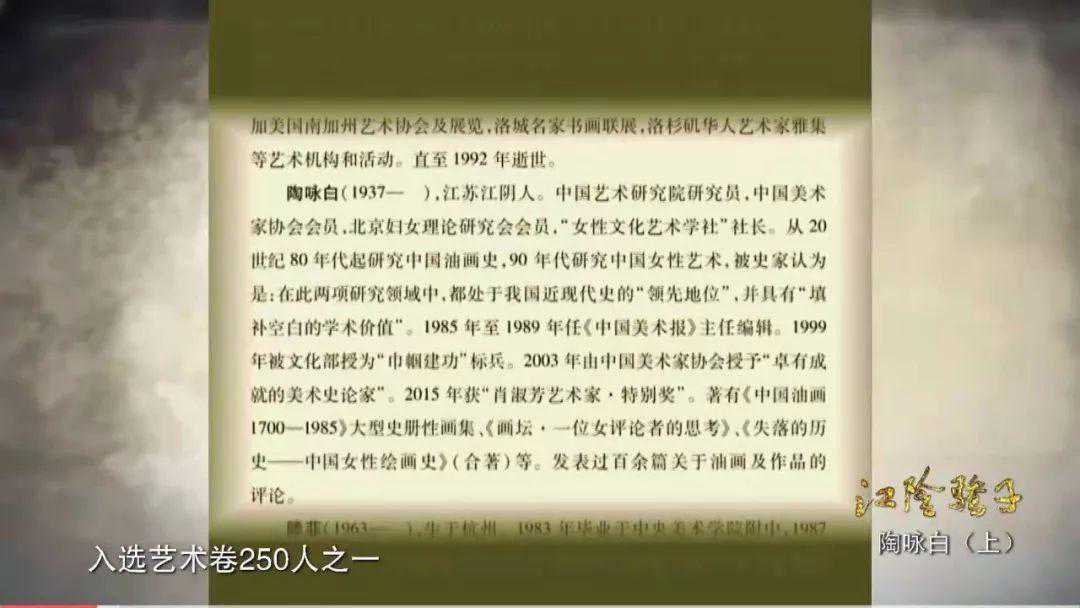 中国美术馆研究员、批评家、策展人徐虹:在这个批评界里,陶老师的地位非常重要。重要就在于女性有很多是可以画画,可以创作,但是搞理论太少了,而且非常难。你想那么大的中国,能坐在圆桌会议最前面的第一排,这个位置不是那么好坐的。