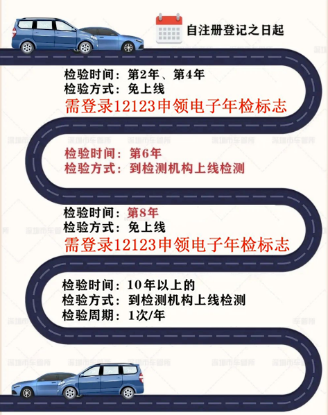 ✅小型/微型非营运载客汽车、大型轿车、摩托车在10年内,每2年检验1次;超过10年的,每年检验1次。