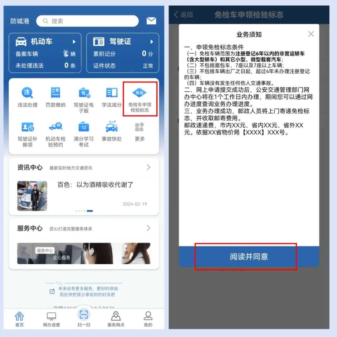 1.除大型载客汽车、校车需回登记地年检外,外地机动车均可在防城港市上线检测。
