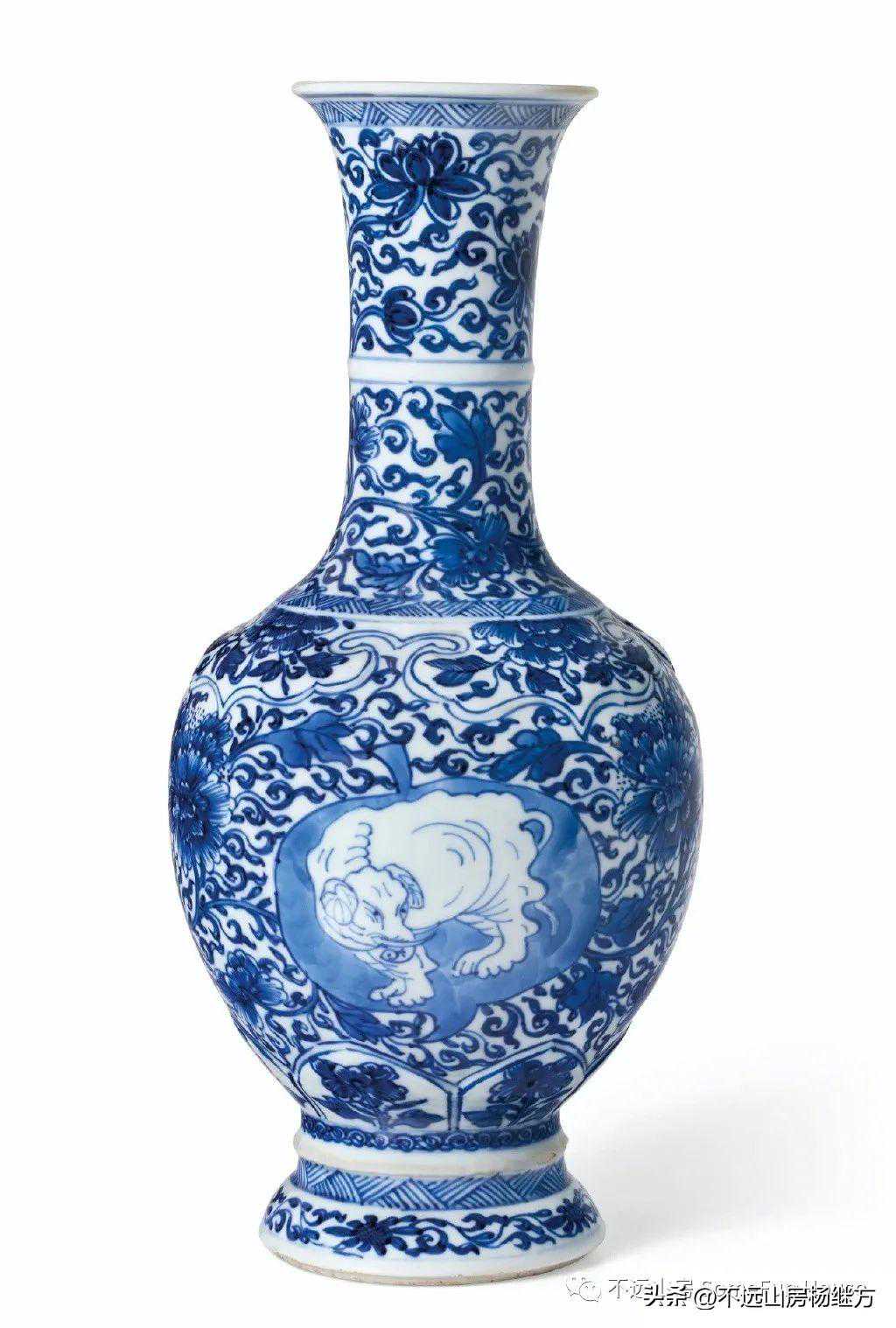 纽约佳士得2020春7月网拍的康熙外销青花缠枝花卉纹开光白象纹长颈瓶