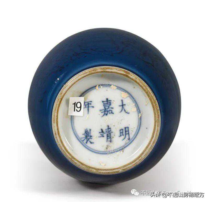 纽约苏富比拍賣2021年3月12日–24日博古:亞洲藝術珍品清康熙藍地青花喜上眉梢圖長頸瓶《大明嘉靖年製》仿款成交价6,300美元