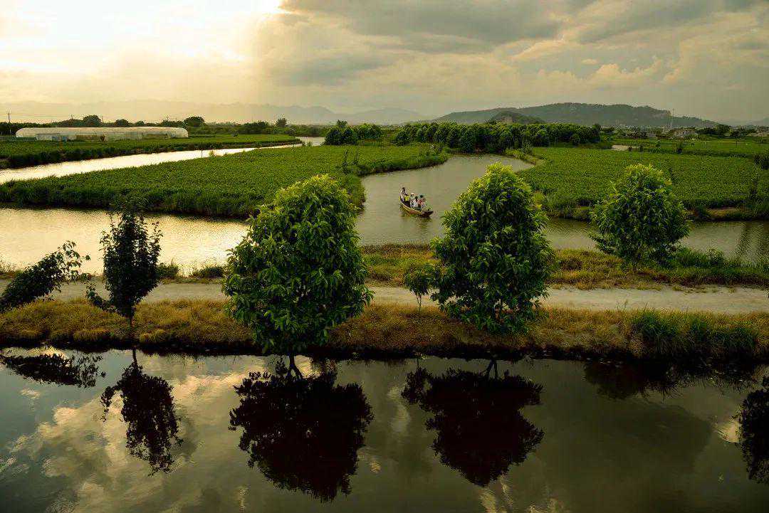 在福州市仓山区帝封江,远处五虎山上青翠连天、乌龙江水波光粼粼,江畔一望无垠的花田里茉莉花开满枝头,为这幅“山水画”点缀出了别样意韵。