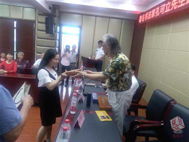 孔可立先生在全国先后收徒弟近百名,他在向新收的两名女徒子回赠笔墨礼品时,寄语弟子勤学苦练,修身养性,而不要急功近利,把书法艺术发扬光大,为繁荣中华文化,作出应有贡献。