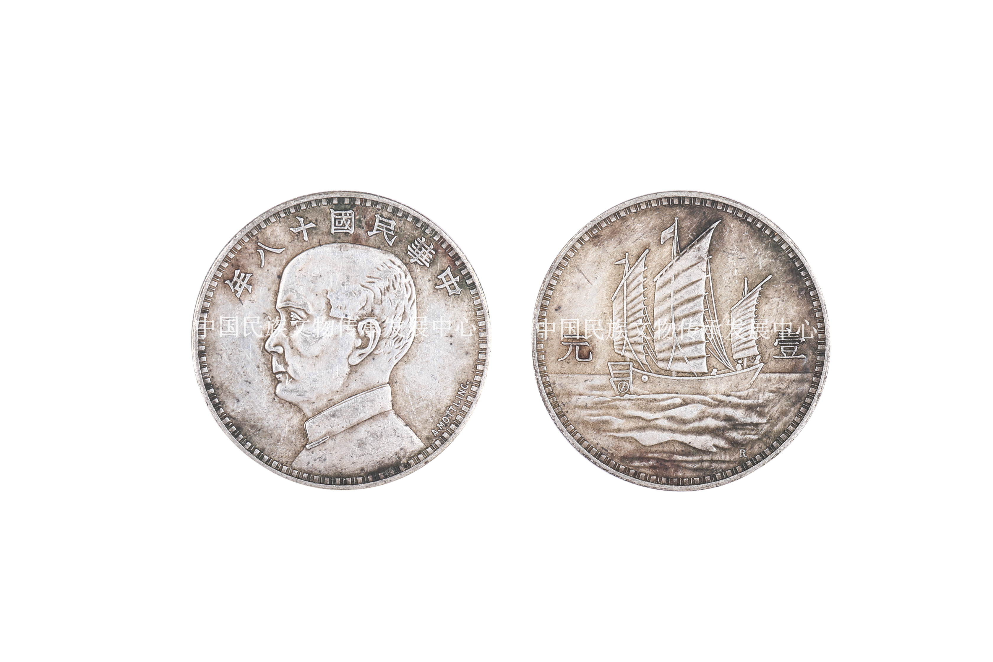 1929年(民国十八年),国民政府委托美国、意大利、英国、日本、奥地利等五国雕刻钢模,试铸孙中山像壹圆银币,正面图案为孙中山先生西装正面像,孙氏头像上环刻铸造年份“中华民国十八年”字样,背面图案为三桅帆船驶于海上,帆船左、右刻面值“壹元”,这组样币因背面帆船上有三根桅杆,钱币收藏界俗称它们为“三帆船”币。