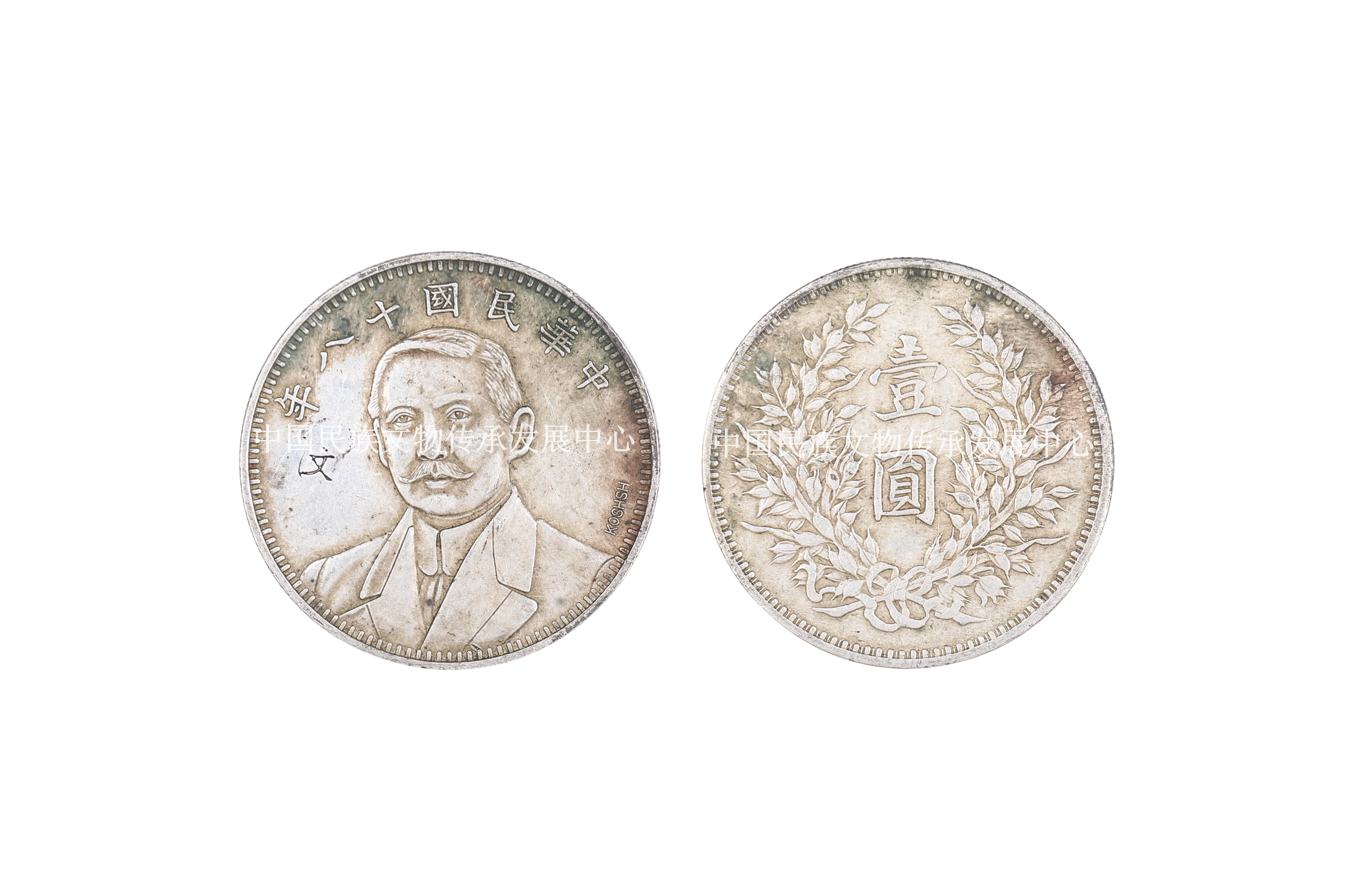 1929年(民国十八年),广州国民政府决定由广东造币厂试铸了面值为壹元的银币样币。该币正面镌孙中山先生正面像,上铸“中华民国十八年”七字。背面正中镌“壹元”二字,外圈有两束嘉禾,其刻模手法非常独特,两嘉禾禾芒芒尖刚好相接,这是其它币所从未有过的。此币是民国银币之中的大珍品,极具收藏价值与投资价值。