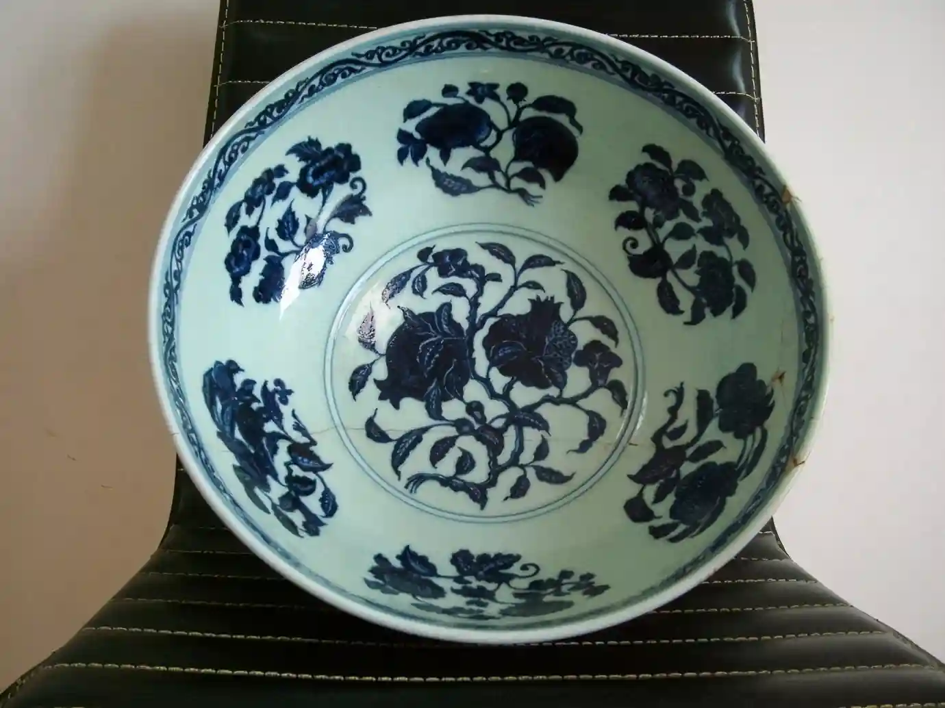 首先第一件就是属于明代的《青花转枝莲花果纹大碗》这一件东西第一眼看就是有一种真实性,而且其青花也是足够到代。但不少民间的收藏家说这一种青花的晕散太假了,像是民国之后模仿制作的。