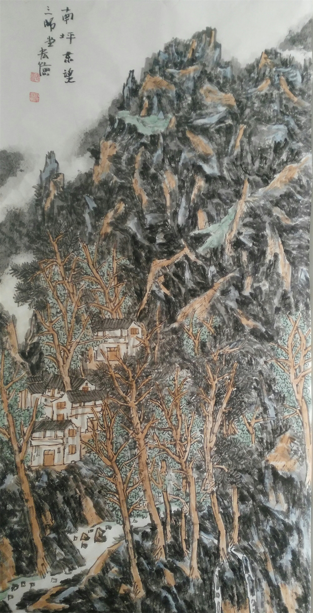 “于墨海中立定精神,笔锋下决出生活”(石涛语),“笔墨当随时代”,可见,中国绘画现实主义的优秀传统一直在继续。宏德先生绘画亦是有着“物象-心象-意象”的转变过程。他亦坚持“度万象而取其真”(荆浩语),并开拓出了一番境界,即有着真山水的势与质,也描写出了对精神家园的憧憬。他对画面内容的安排及空间构成的把握能力较好,于是让我们进入了“可望、可居、可行、可游”之境。