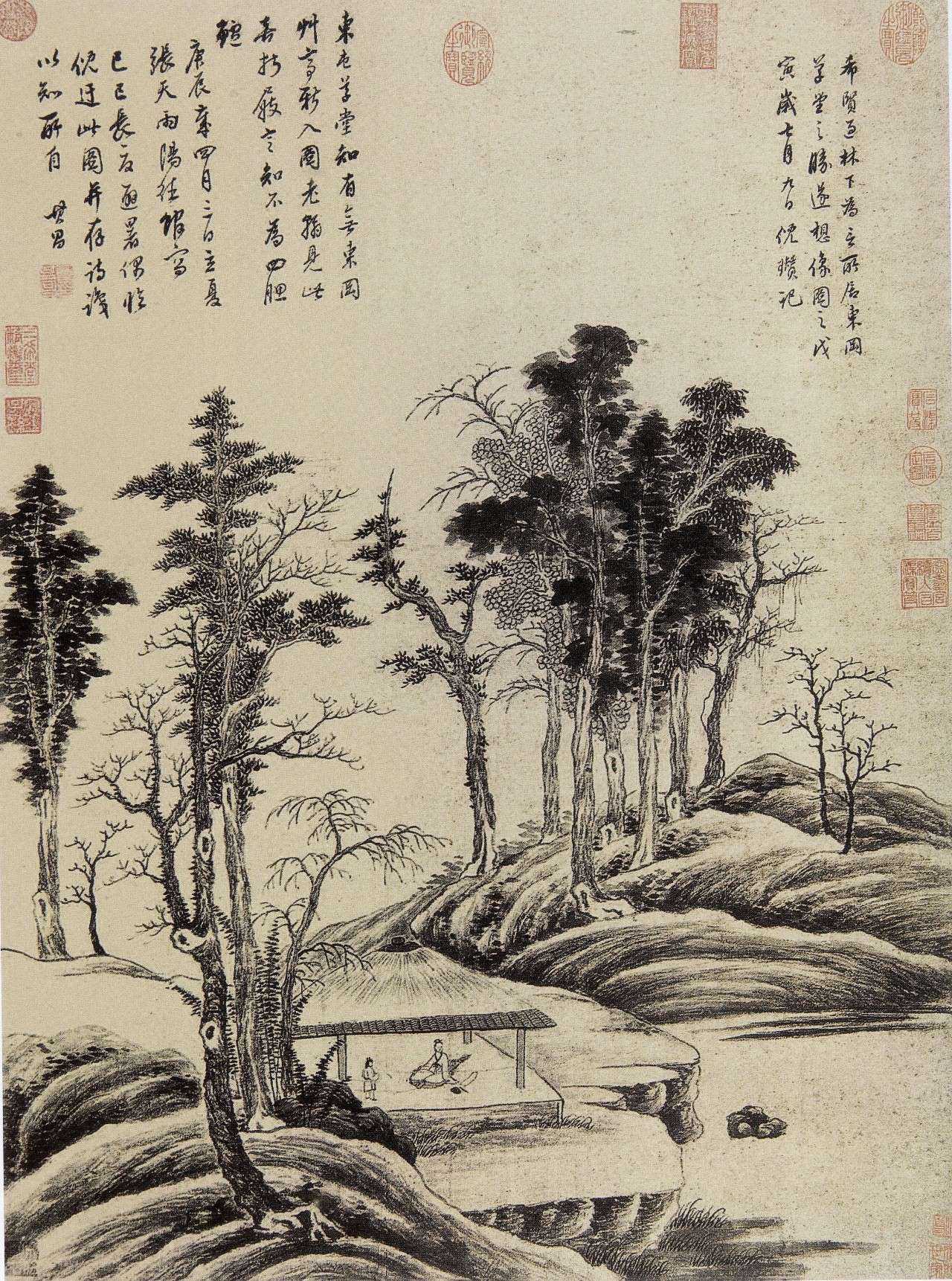 董其昌认为学习书法必须临帖古人,提出了“学书不从古人,必坠恶道”和“妙在能合,神在能离”的主张,强调掌握古代书法家的技能,临摹仿写是唯一的途径。