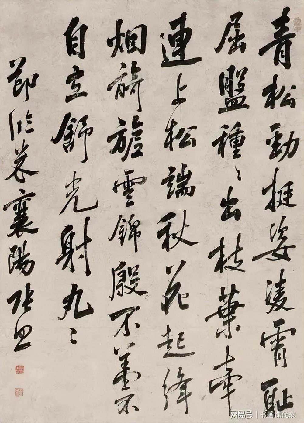 他对魏晋的二王却没有展现“二王”那种大家气度风范,对元代赵孟頫的追随也没有赵字的摊躺姿态,对明代董其昌的临习却没有董字的平淡天真。
