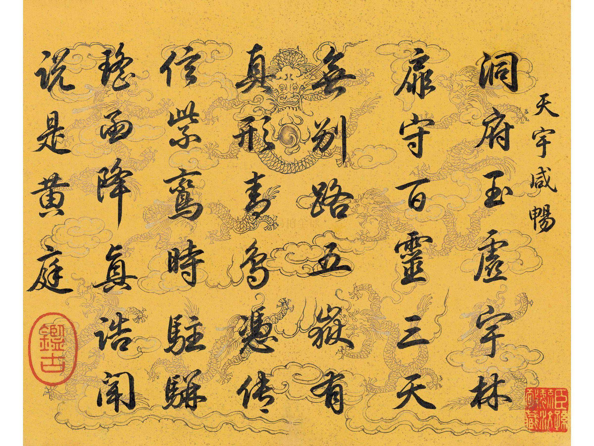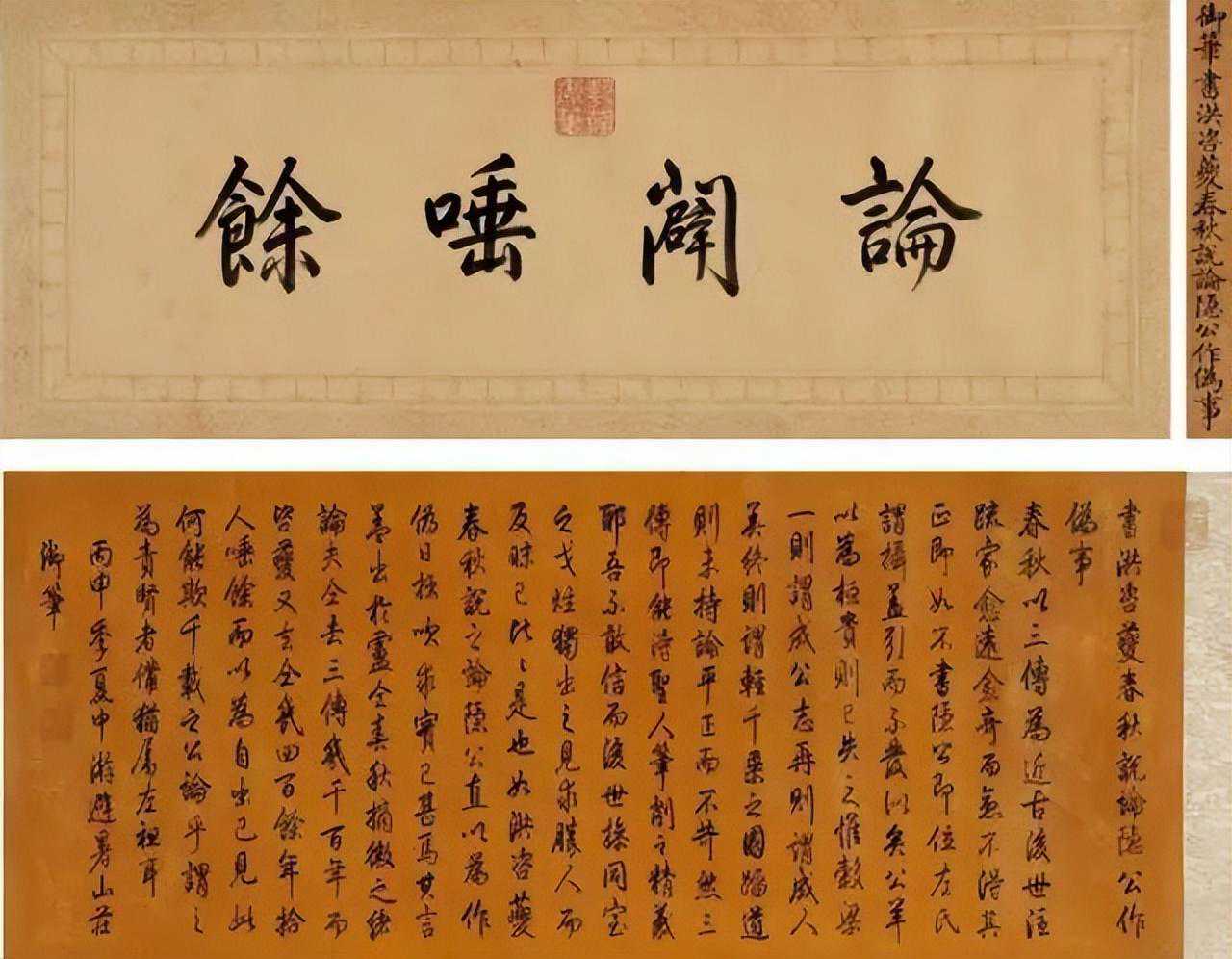 他的御笔书法分为亲笔和代笔两种,据记载,每当需要写楷书大字匾额、抄录重要诗文内容或书画题跋时,通常会请人代笔。
