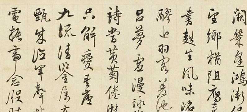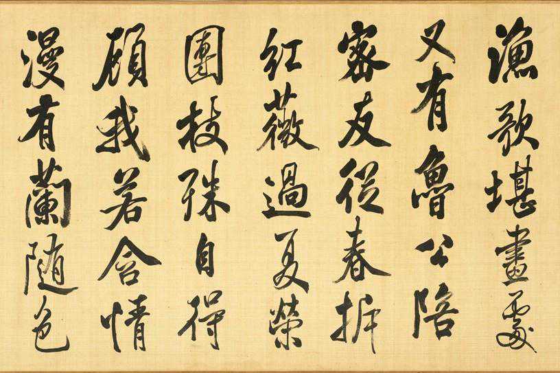 从传世的张照《临米芾重九会郡楼诗帖书轴》中可以看出,张照的书法以米芾的笔法为主,结合颜真卿的结字习惯来构建字体。这与张照早年对颜体字的用功有直接的关系。