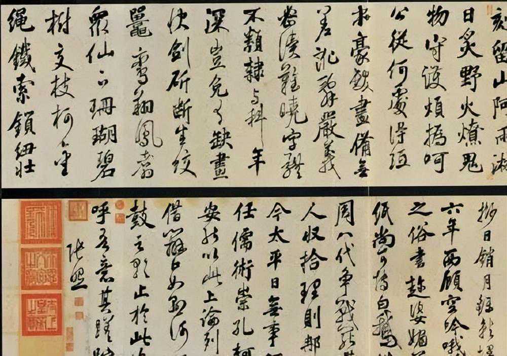 通过将米芾的《蜀轰帖》与张照的《清张照临米芾拟古诗书轴》相对照,我们可以发现,相较于米芾,张照的书法更为肥润细腻。