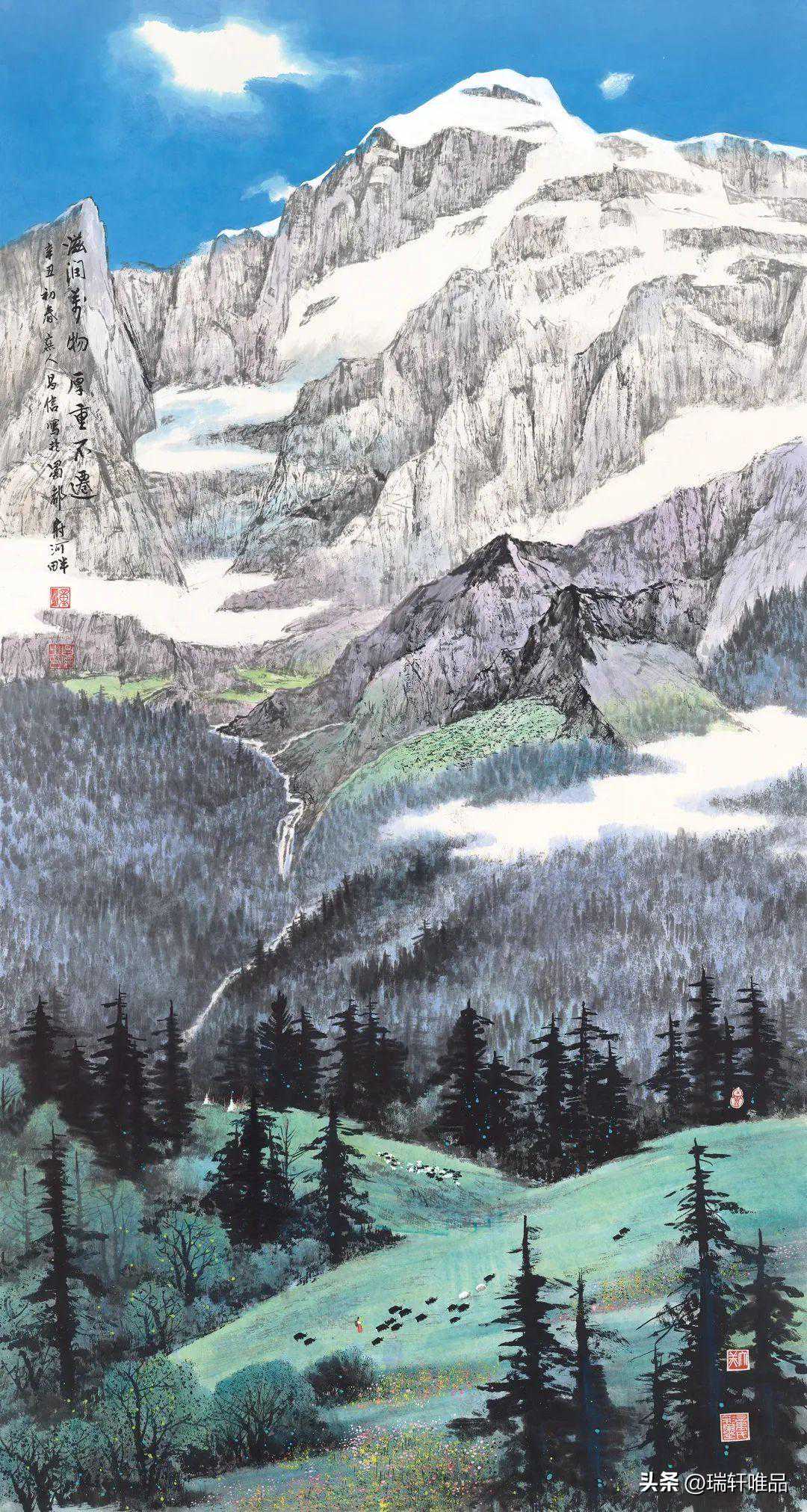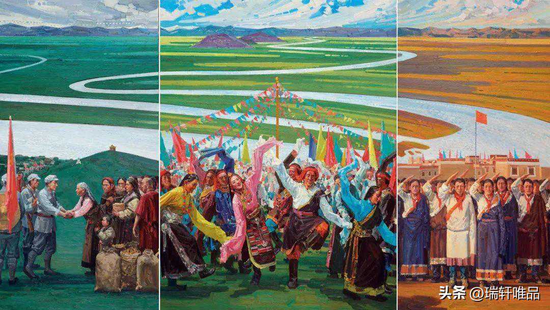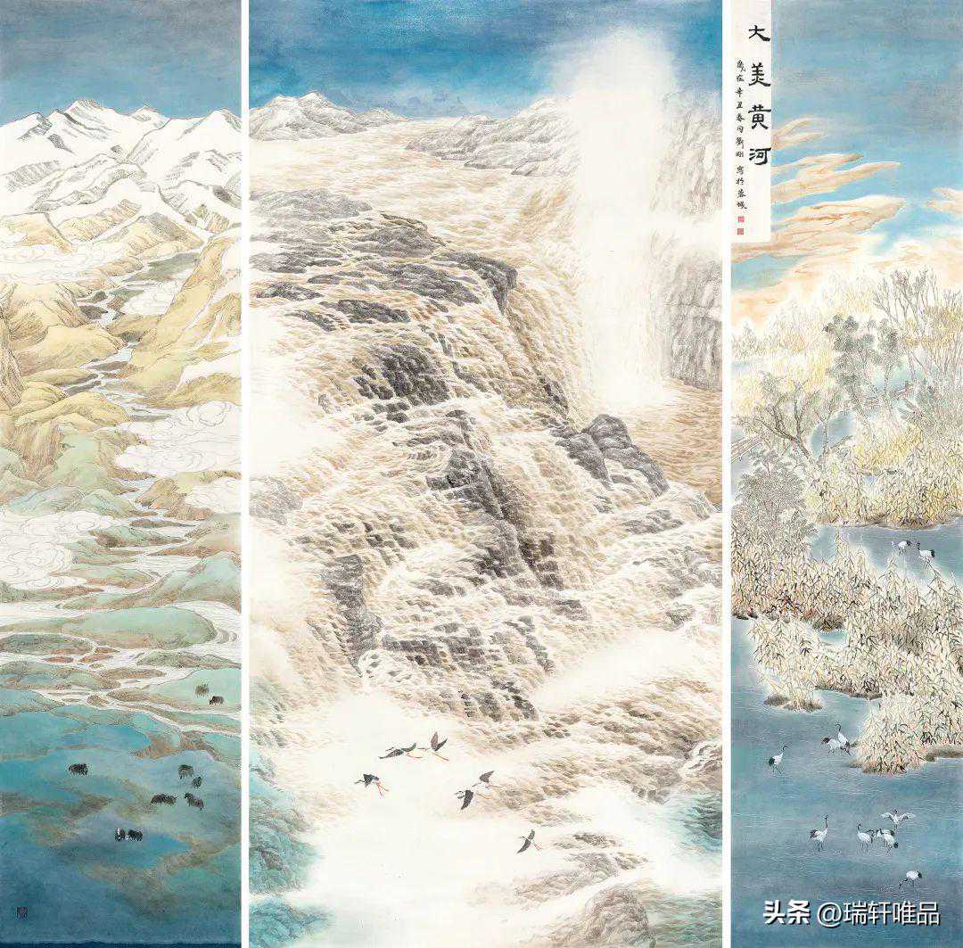 拉孟翟启兵邓远清刘泓伶绿水青山黄河源60cm×80cm×3综合材料