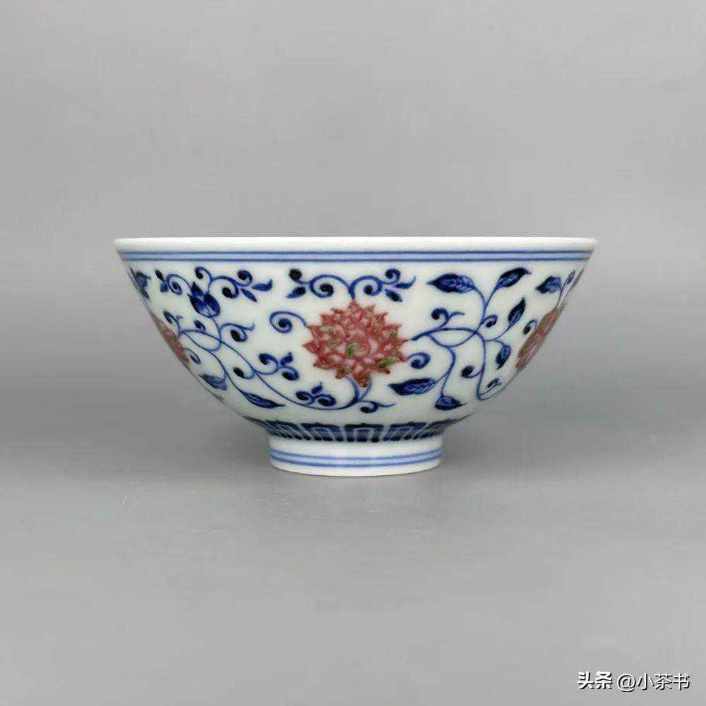 拍品5:青花釉里红缠枝花卉纹带内画斗笠杯