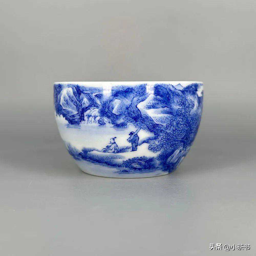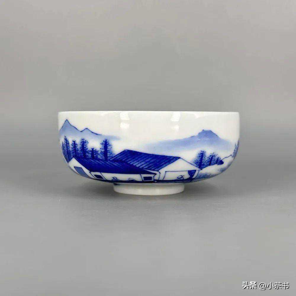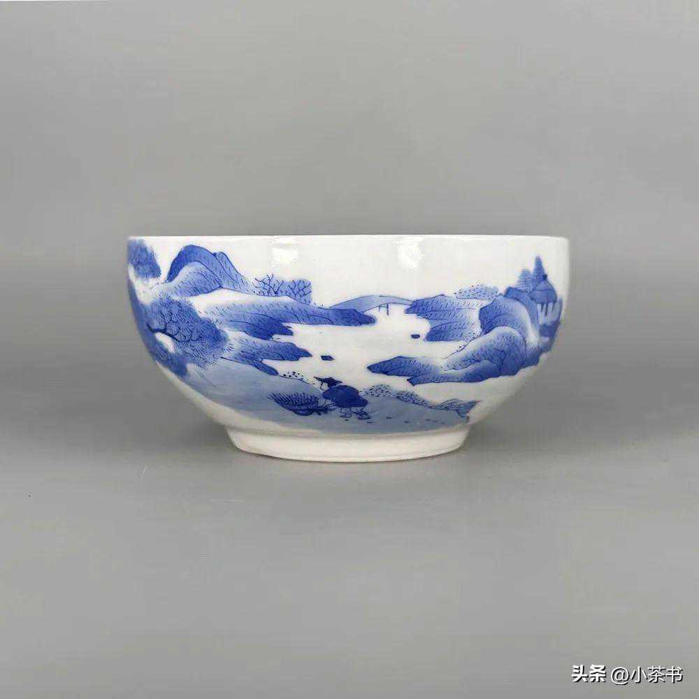 拍品9:青花山水溪山行旅图钵式杯