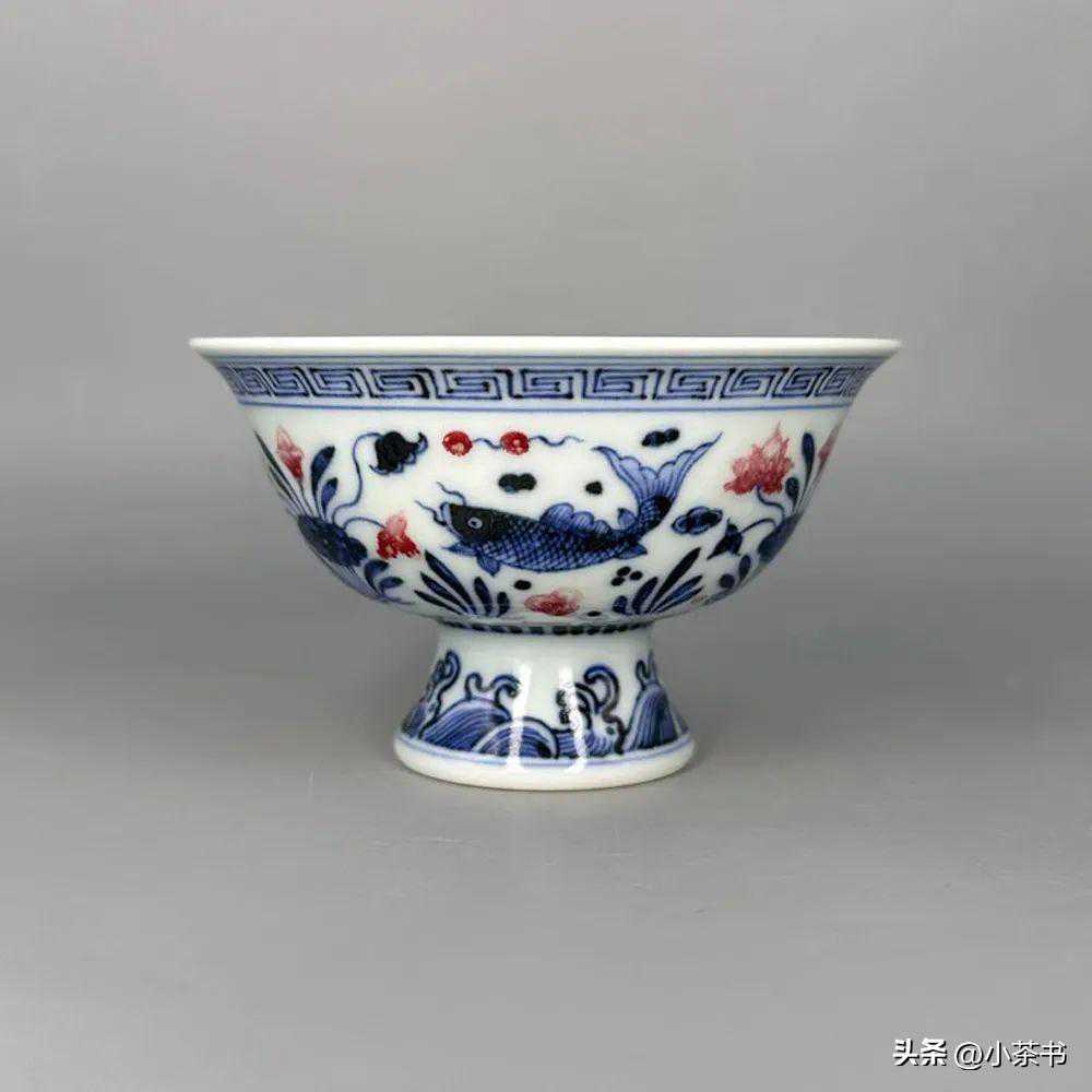 拍品7:青花釉里红鱼藻纹带内画高足盏