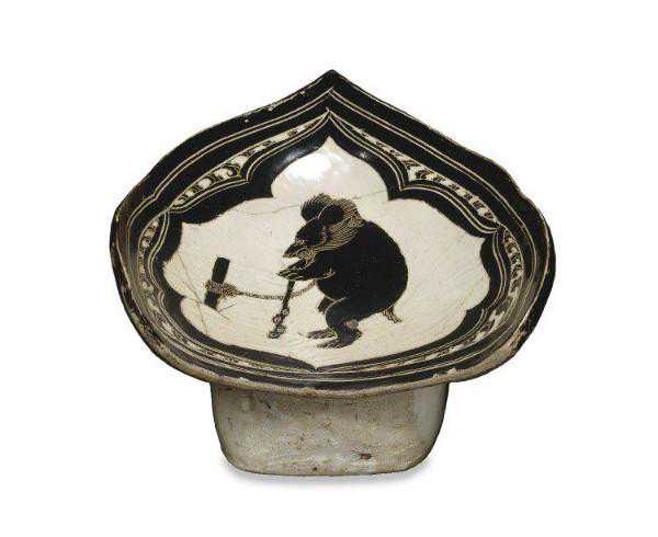 北宋磁州窑白地剔黑熊纹枕,大英博物馆藏