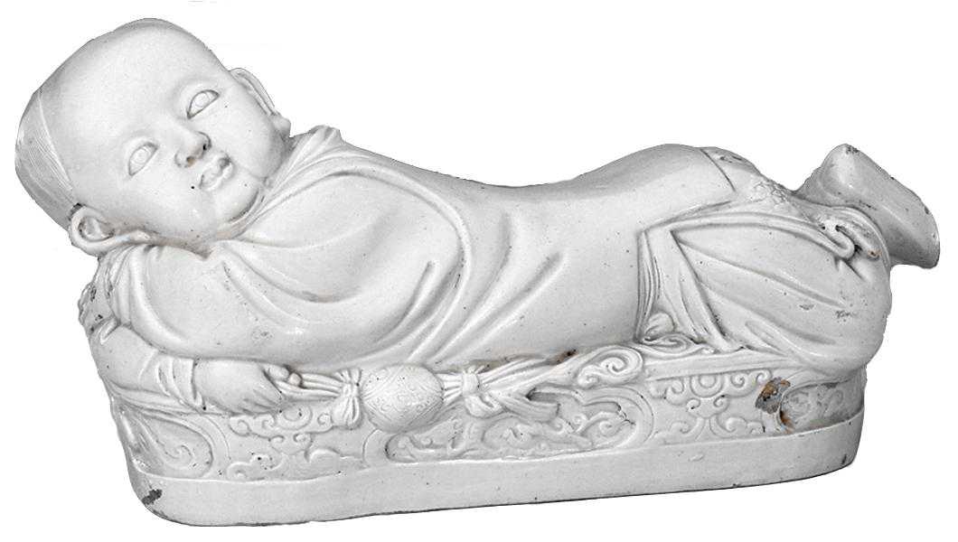 定窑白釉孩儿枕