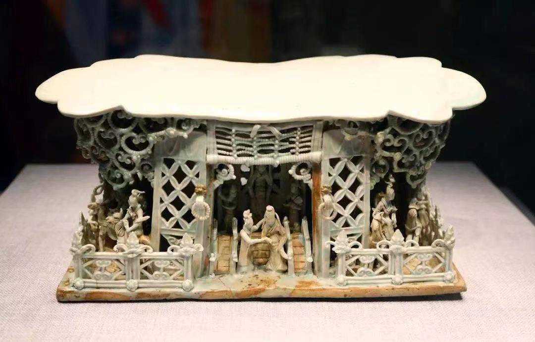 五代白釉镂雕殿宇人物枕,上海博物馆藏