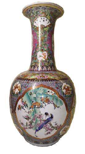 在工作室,任斌强拿出早期绘制的广彩花瓶,其纹饰之绚丽,工艺之繁复,画工之精细,让人叹为观止。这个花瓶是上世纪70年代他分配到工艺厂时所绘制的,由任斌强绘制原作后,再让人根据样品图案进行复制。这个花瓶后来流转到文物商店,任斌强买回来作为留念。这个花瓶在纹饰上虽然是广彩的技法,但绘画部分运用了粉彩的技法,二十多岁的任斌强开始有意识去创新,画广彩并不是跟随老师傅亦步亦趋,他所画的题材都是自身有感受的物象,而且对于广彩技法有着刨根问底的精神,达到“知其所以然”的地步。所以,直到现在谈起广彩,任斌强依然神采飞扬,娓娓道来。