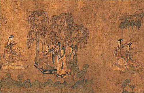 顾恺之(345-406),字长康,昆陵人,诗文书画皆能。画风细劲柔和,笔墨连绵不缀,有“游丝描”之称。