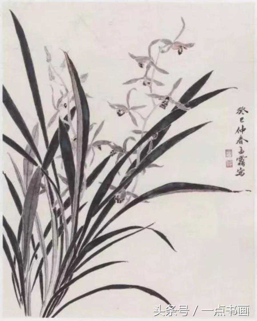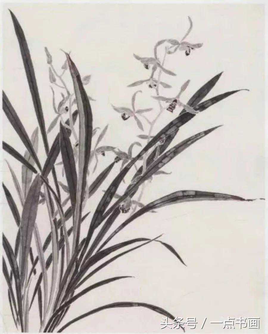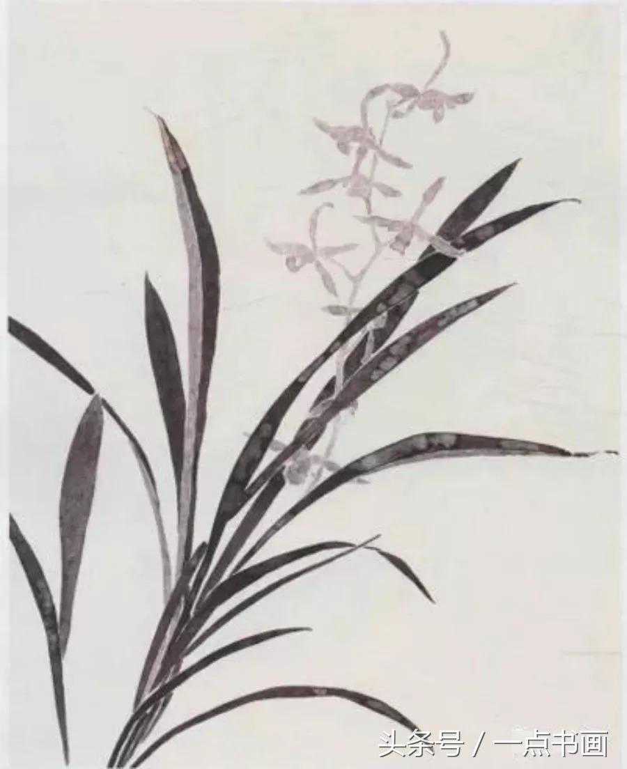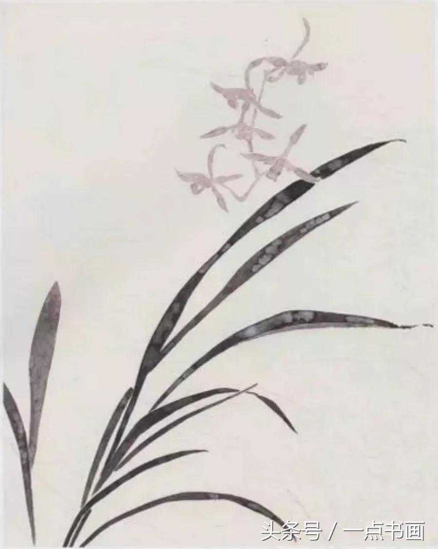 步骤一:先以淡墨画出兰花,注意其掩隐向背,要画出飘逸洒脱之感。