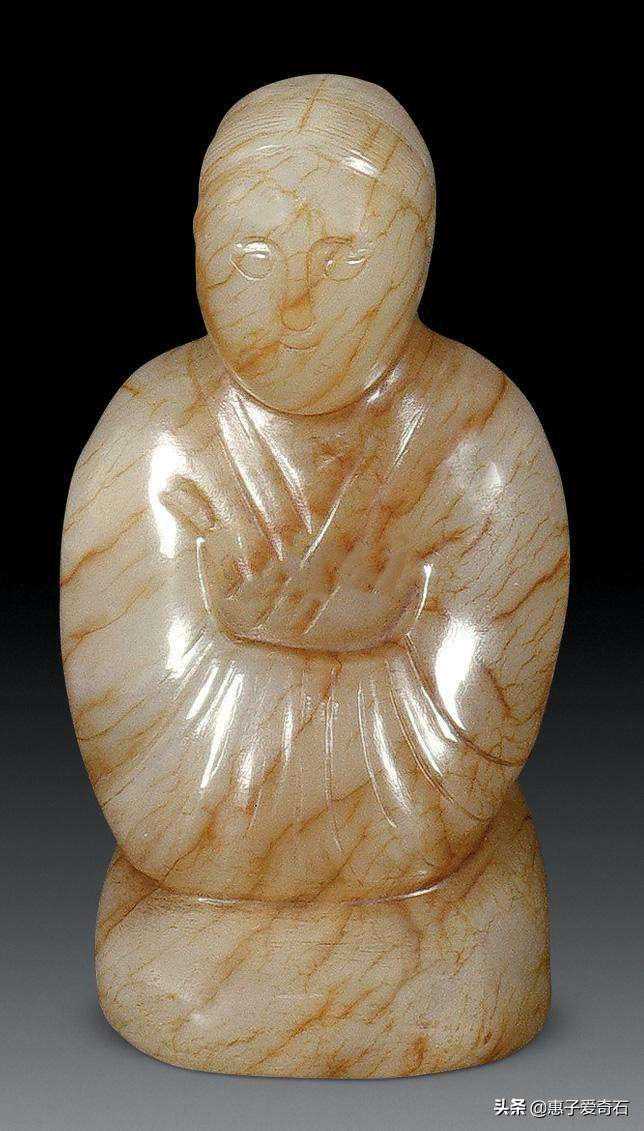一种是脚面伸直与腿面平行,上身挺直,双膝着地,称之为“跽”,这在古代礼节中属于一种坐姿。如《项羽本纪》中说:项王按剑而跽。也就是坐着,并非跪拜。这种玉雕相对很少,也并不含有遇贵人之意。
