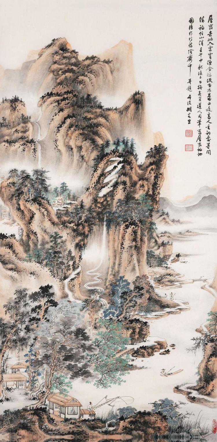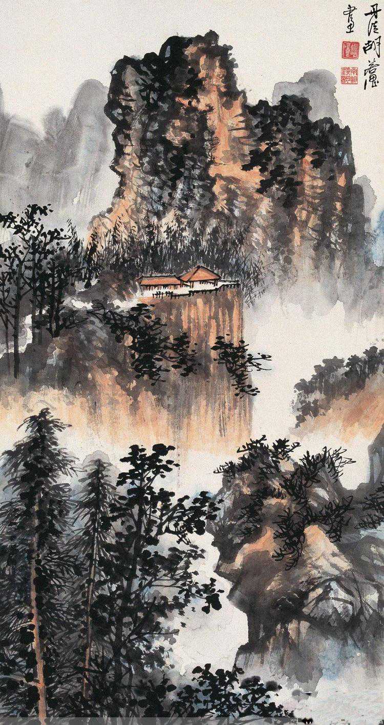 他于山水、花鸟、人物、走兽、界画无一不能,工笔、写意、青绿、浅绛、泼墨、泼彩无一不精,是现代海上画坛罕见的多面手。中年以来,尤长于绘画黄山奇景,他以传统中国山水画笔墨为基础,在色彩、水墨、结构、章法乃至光影的处理上都有着独到见解,由此开创了当代“黄山画派”新格调。他笔下的山水也以黄山景致为代表,水墨氤氲,墨彩幻化,气象恢弘,世称“南胡风韵”。这一美誉是对胡若思先生艺术成就的肯定。若思先生在艺术上勇于探索的精神,以及为中国山水画艺术的继承和发展所作出的可贵贡献,的确是值得人们永久纪念的。任何一位卓有成就的中国画大师,都高度重视对传统技法的继承、掌握和锤炼。胡若思先生精湛的传统功力更是为知者所称道。他力主中国画须从唐宋入手,取法乎上,攻之弥深。他由宋元古法中汲取精华,奠定根基,继而渐趋佳境,直至自成一家的艺术发展轨迹。当我们观赏着胡若思先生的山水时,不由得为他独具表现力的笔墨技法和瑰丽典雅的笔墨情趣所陶醉、所折服。