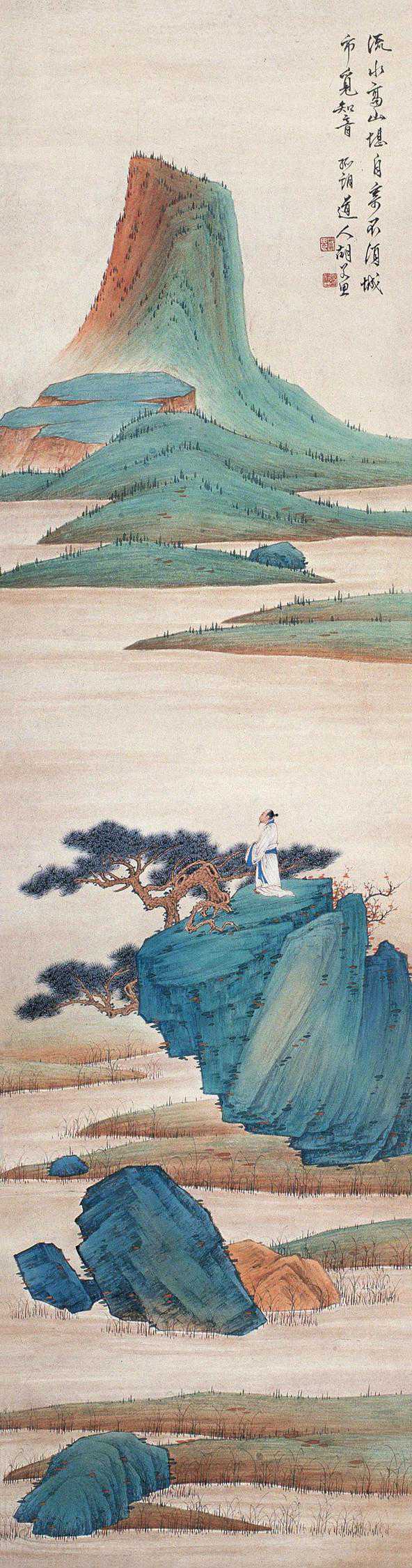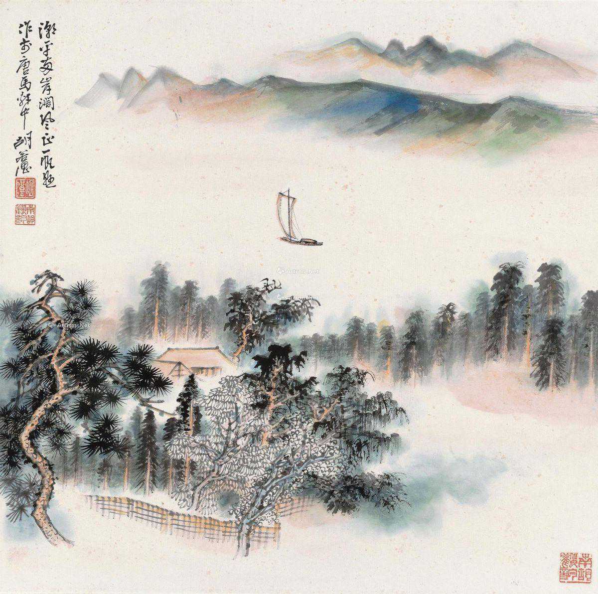 胡若思(1916.3—2004),字遐思,号琴人。画室名勰一斋。曾为中国第一部彩色片《梁山伯与祝英台》及《梅兰芳的舞台艺术》绘制山水画景。历为中国美术家协会会员,上海文史馆馆员,上海戏剧学院美术系教授,上海中国画院画师。擅山水画,尤喜画黄山。