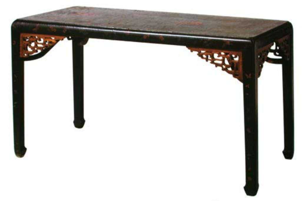 传统家具除了以优质的木材为原料以外,以漆髹饰家具也是一个不可忽视的工艺类型。髹漆家具一般分素漆和彩漆两大类。以各色素漆油饰家具主要是为了保护木质,已在用材部分介绍过,而在素漆之上再施加彩绘的各种手法则属于纯装饰目的,归纳起来主要有如下几个品种。
