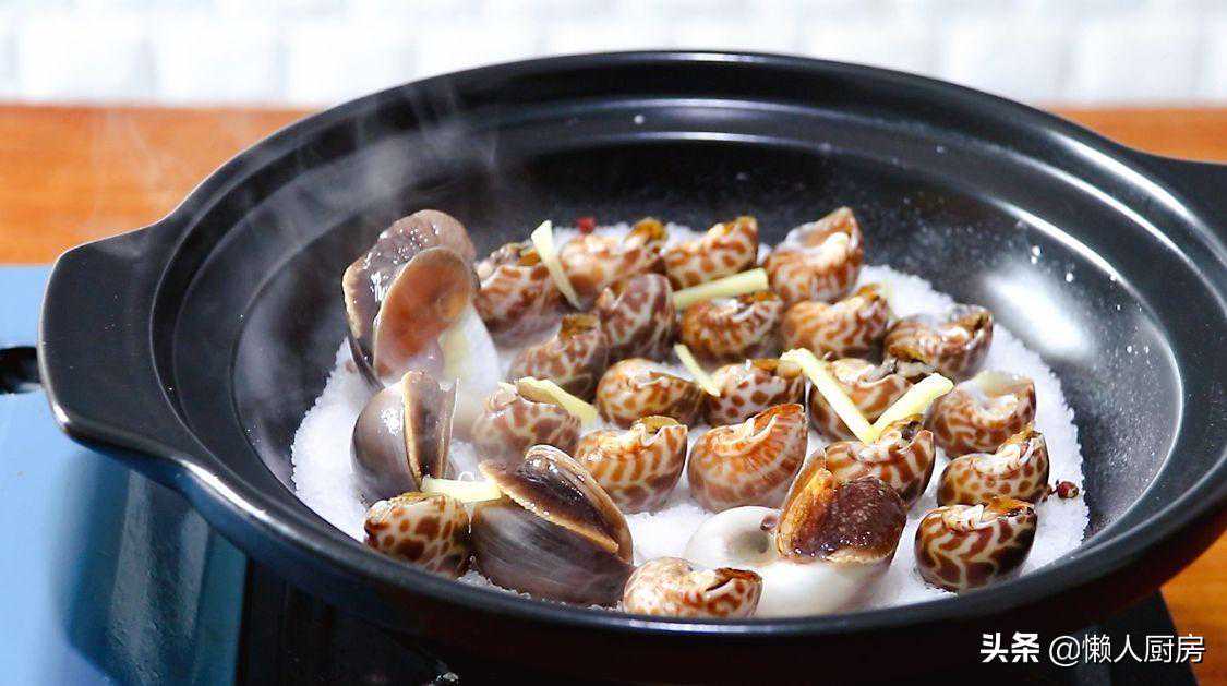 海螺不用水煮,倒进盐中烫一下,比白灼的好吃,收藏起来