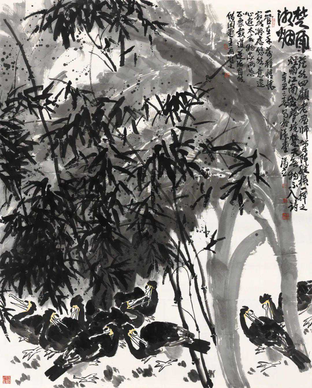 汤立—1947年出生于湖北武汉,现为中国现代文化研究中心研究员,中国艺术研究院文学艺术院研究员,中国国家画院研究员。早年从事现代山水画创作,后转向大写意花鸟画,偶作写意人物,能文能诗,擅长书法,是当代极具影响力的写意画大家。