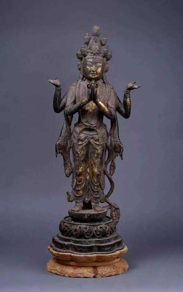 唐《鎏金铜六臂十一面观音立像》天水市水月寺征集天水市博物馆藏