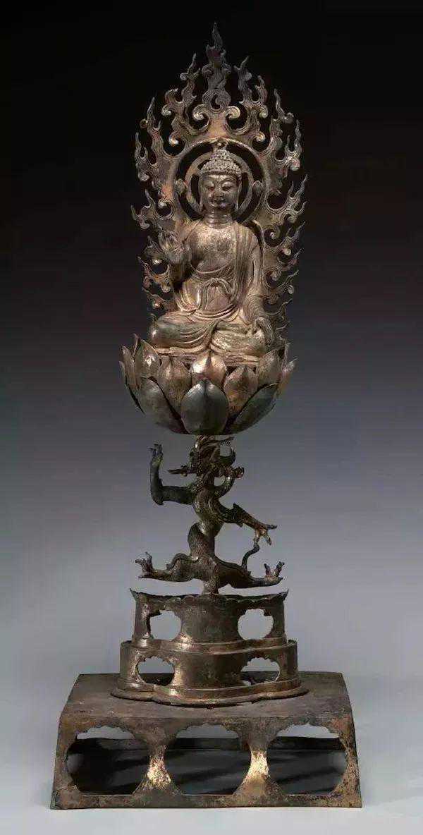 五代吴越国《鎏金铜龙柱佛像》杭州雷峰塔地宫出土浙江省博物馆藏