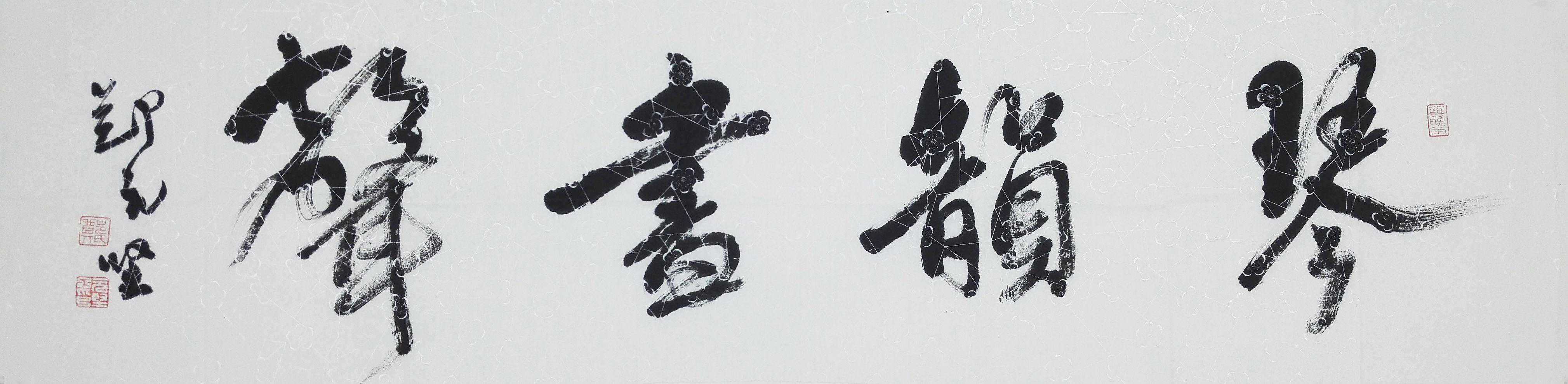 元坚多年来专心于米芾的书法学习创作,从不间断,心摹手追,对米字的结字。姿态了如指掌,运用自如、气息高古、神韵浑然。又涉猎金文、古隶、明朝张瑞图书法。由于有很强的造型能力,结字谋篇自然,整体效果突出。元坚近期的作品又多了点辽宁书风的影子,不计笔画工拙,强调作品的各种元素的构成关系,注意视觉效果,也有点“流行书风”的味道,这是当代青年书家敏锐的视觉和超前的艺术观念的表现,也是书法的时代产物,这种探索精神可喜,但必须把握好分寸,元坚也意识到这些问题,正努力地诠释经典作品,向传统深处扎根。