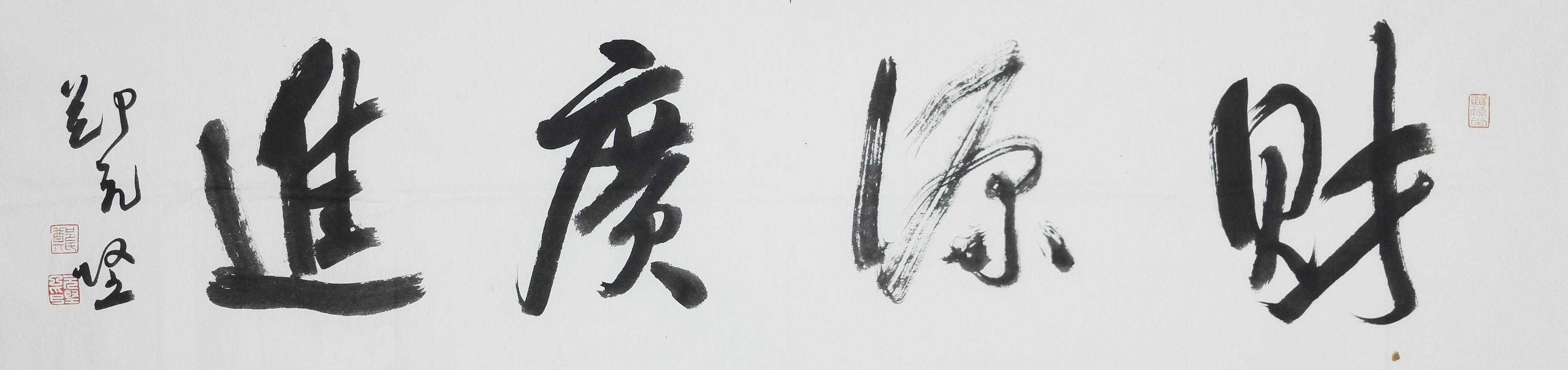 财源广进:古往今来,商业是聚集财富的标志。而从事商业的人,也都希望借助商业活动而使财源广进、金玉满堂。这幅作品适合用在商界或喜庆之时。
