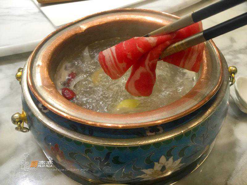 早在乾隆年间,老北京就开始采用景泰蓝全铜作为火锅锅具,优雅的蓝与富贵花相映衬,顶盖上轻烟袅袅,别是一番意趣。东来顺至今依旧沿用这种紫铜火锅,它炉膛大、放炭多、开锅快、通风口合理、燃烧时间长,据说可以2小时不用换火,依旧旺盛。