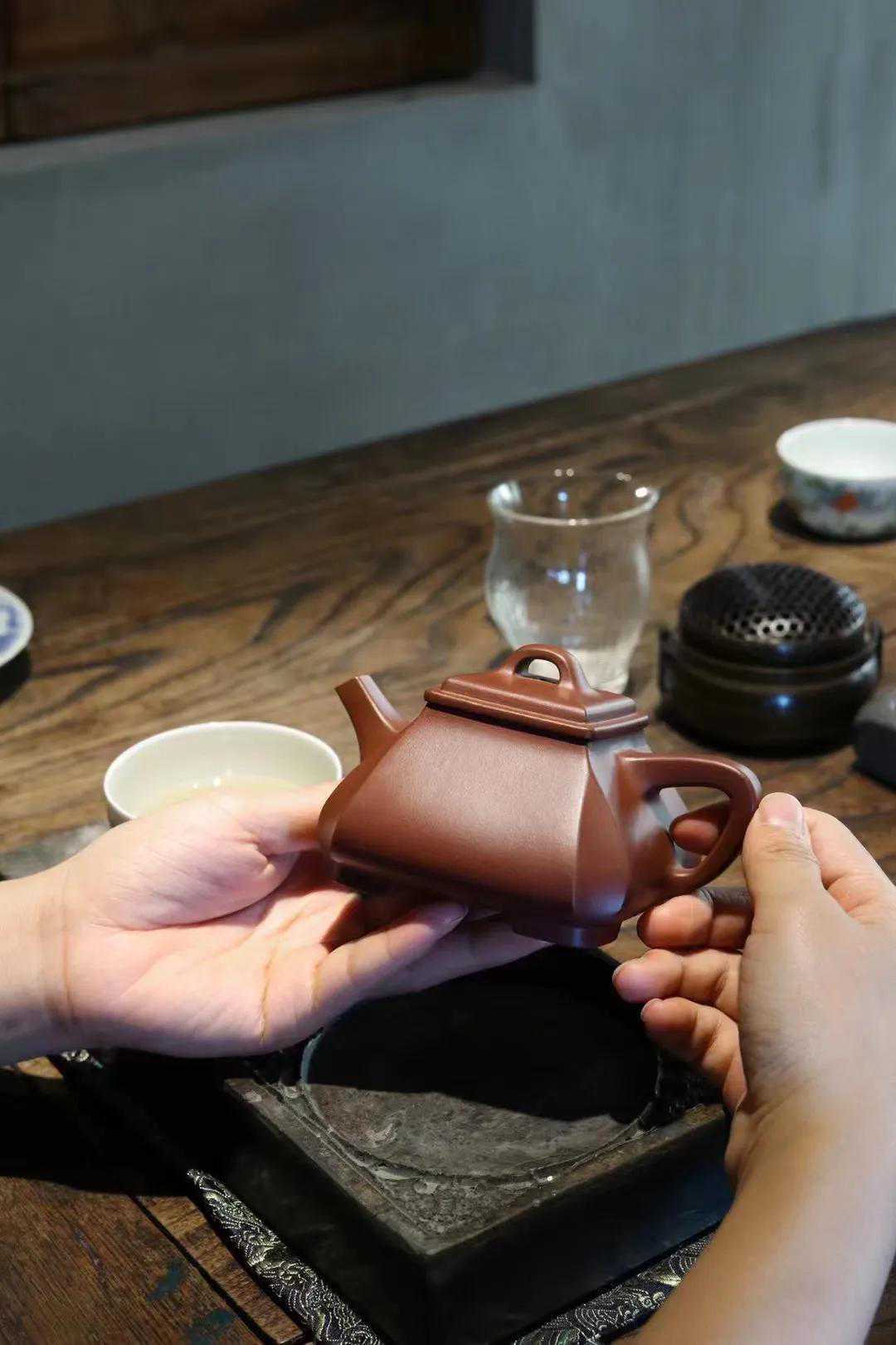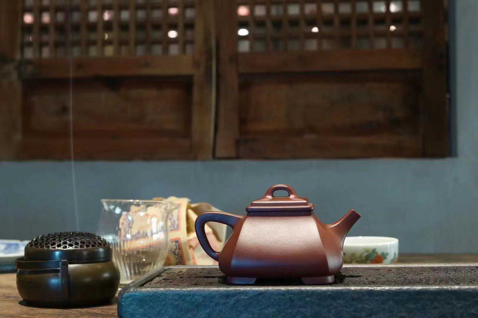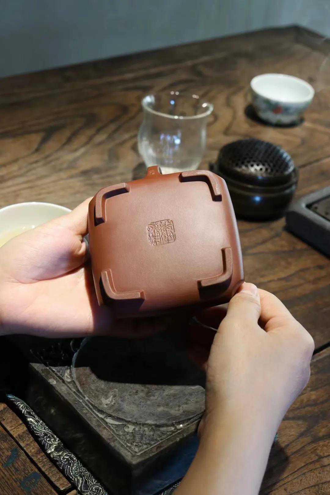 壶的结构有丰富的层次感,上下照应,气韵贯通,少了一份尖锐多了一份柔和,四方抽角整体器型诠释了方与圆的完美艺术