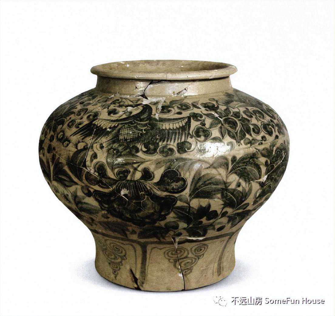 吉州窑玳瑁釉碗(左)、吉州窑黑釉上剪纸贴花纹盏(中)、吉州窑黑釉剪纸贴花双凤纹盏(右)