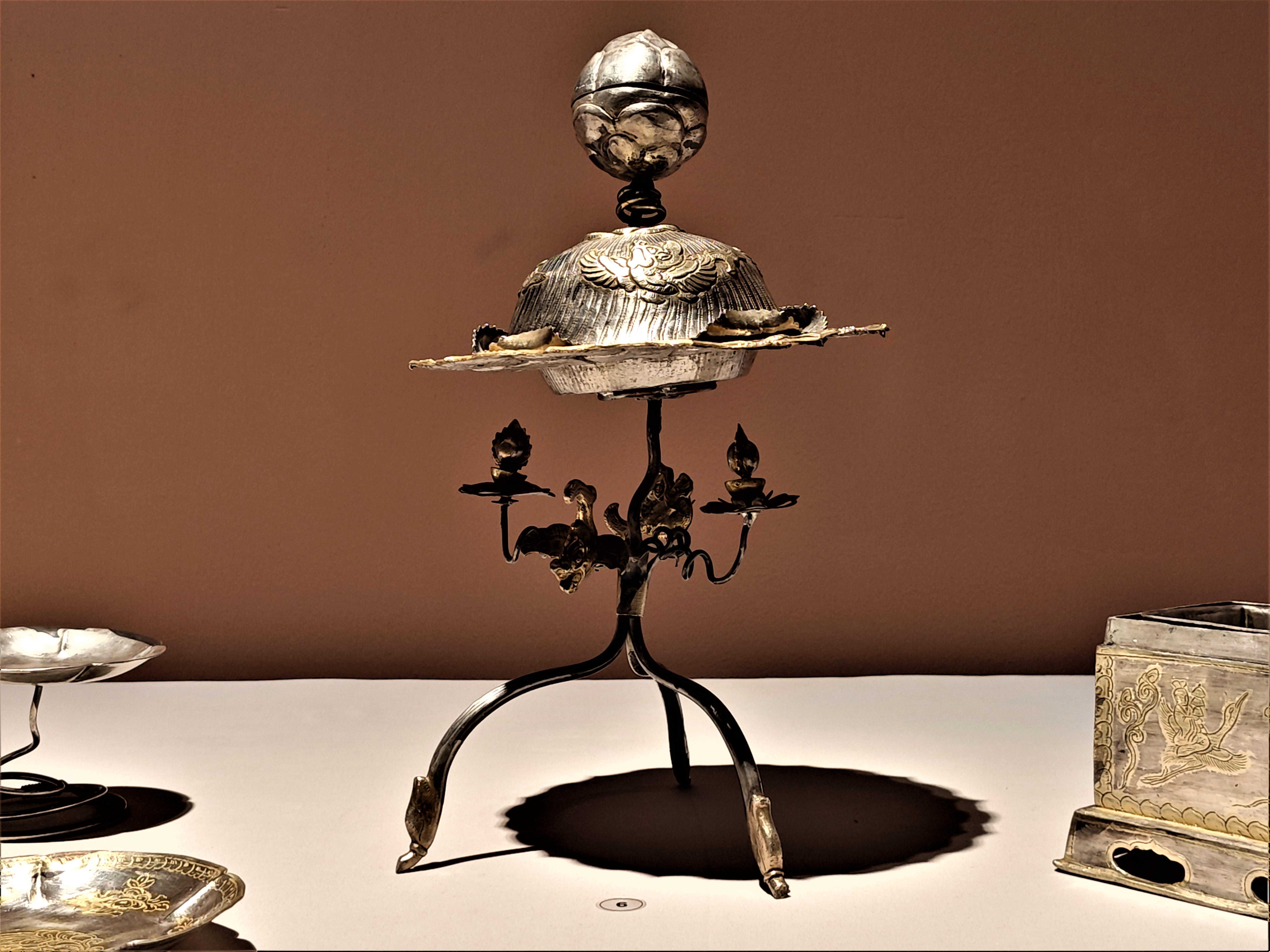 鎏金摩羯鱼三足架银盐台