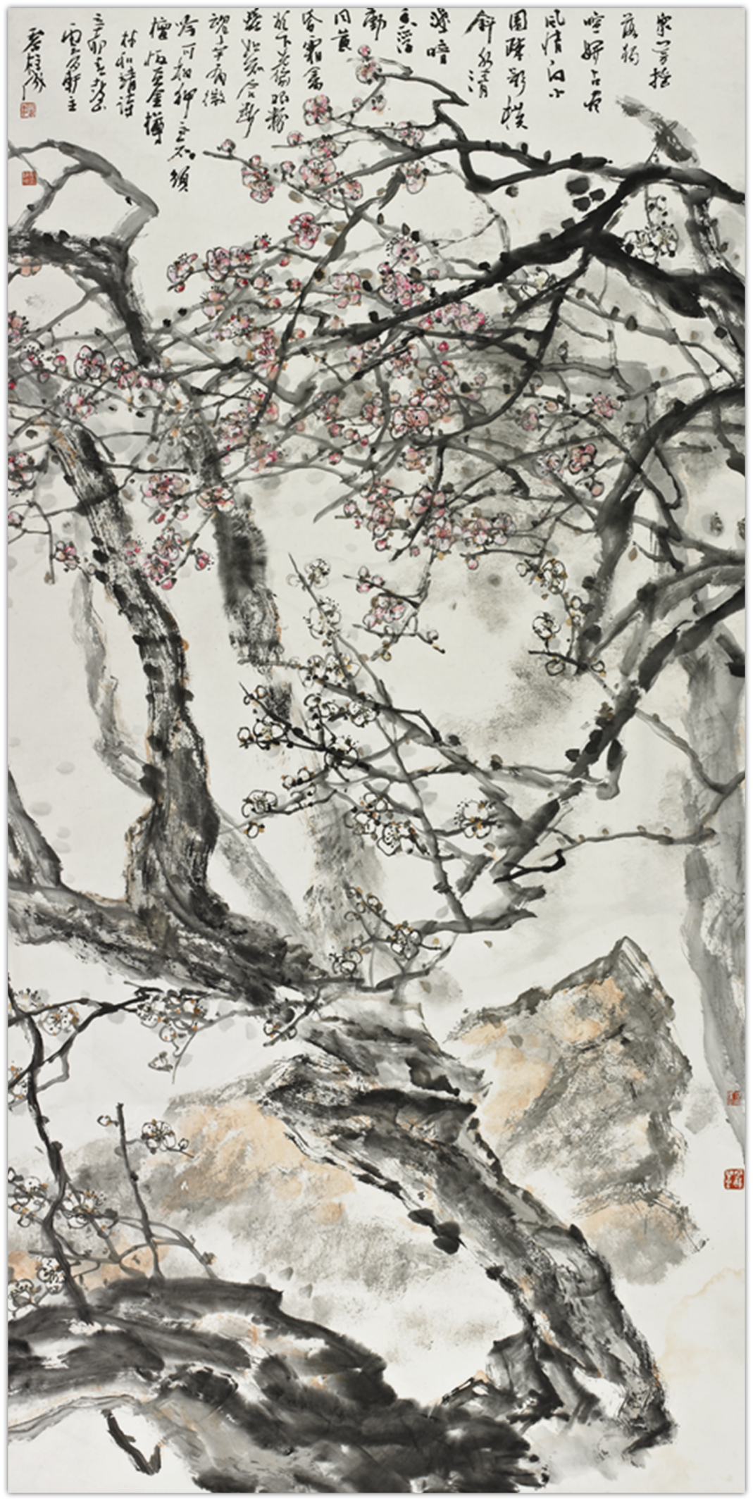 黎柱成的画具有浓烈的岭南特色,纵横均匀带来扑面而来的气息,尤其是他的传统程式和新题材的把握,处理的非常好,他的花鸟画的题材很多,包括海棠、牡丹、木棉都非常有特点。这些传统的题材又是非常难创新的题材,他用自己独特的表达方式呈现出来,是非常难得的。